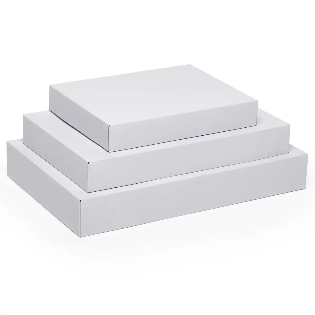 Our White and Natural Kraft Apparel Boxes are an excellent choice for retail stores offering gift-wrapping services or stylish packaging solutions. These two-piece folding pop-up boxes are available in a variety of sizes—including generous coat-size options—and are offered in either a sleek Gloss White Frost finish or a textured Recycled Natural Kraft Groove design. Crafted with sustainability in mind, these boxes are made from 100% recycled materials. The Kraft boxes are fully post-consumer recycled, while the White boxes contain 80–100% post-consumer fibers. The interior of the White boxes features an unbleached white tone, which may vary slightly to a soft gray, while the Kraft boxes showcase a natural brown interior with subtle variations in shade.