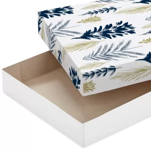 At UGI Packaging, we specialize in crafting custom chipboard apparel boxes that blend durability with visual sophistication. You can choose from a wide selection of finishes, including matte or gloss solid colors, patterned or textured papers, foil-wrapped surfaces, or even fabric coverings. Your logo or artwork can be printed or foil stamped to create a packaging style that reflects your brand identity.