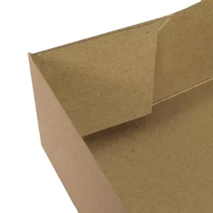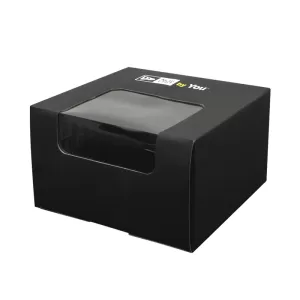 Another variation crafted by UGI Packaging combines a sturdy chipboard base wrapped in paper with a clear vinyl lid. This hybrid design not only enhances strength but also provides additional space for branding and printed graphics on the base, delivering both durability and visual appeal.