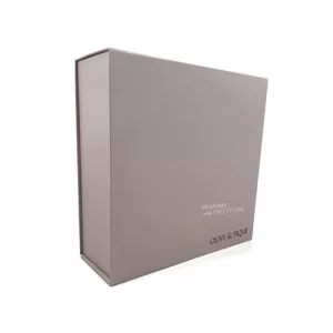 Flip/Magnetic Closure Box: Magnetic flap folds over top; magnets embedded in board layers. Board thickness: 1500-1800 GSM; hinge crease angle 90°. Max load: 3 kg.