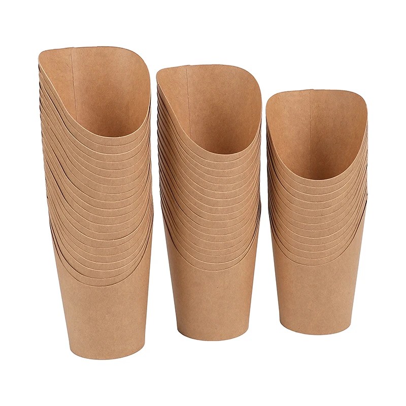 Each cup is lightweight yet sturdy, designed to hold fries, chips, desserts, or small pastries without tipping over. Their natural kraft paper appearance adds a rustic and professional touch, making them ideal for home use, food trucks, restaurants, or catering services.
