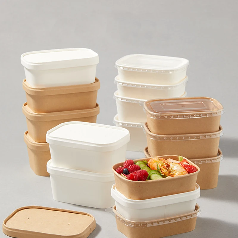 kraft paper lunch box, disposable food storage container, eco friendly takeaway box with lid, biodegradable salad cake packaging, compostable snack container, catering food boxes, kitchen picnic accessories