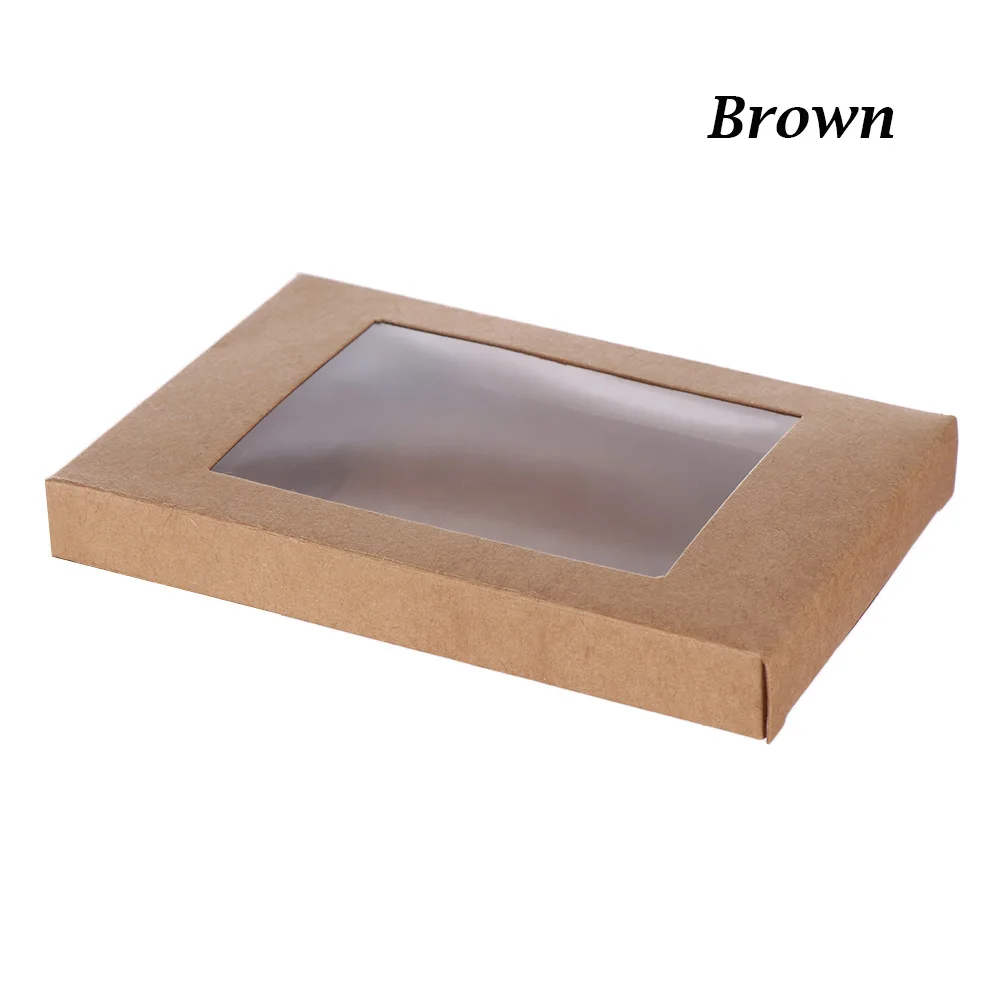10Pcs Kraft Paper Gift Box Cake Package with Clear PVC Window Candy Wrapping Bag Wedding Birthday Party Favors Vintage Color