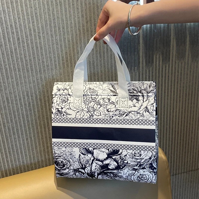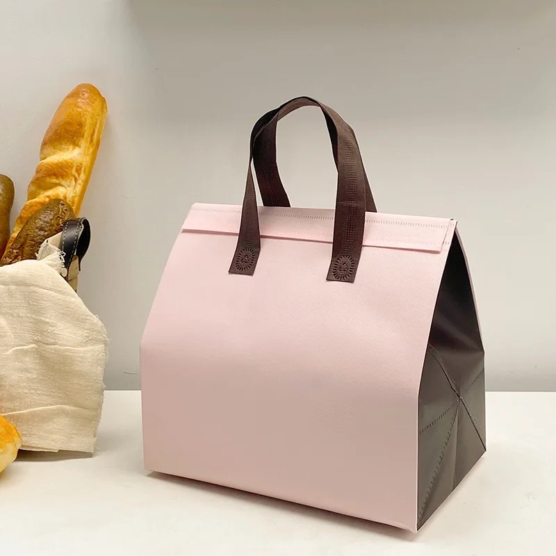 10pcs Pink Non-woven Insulation Tote Bag Portable Fabric for Food Drinks Package Keep Warm Cold Delivery Reusable Pouch