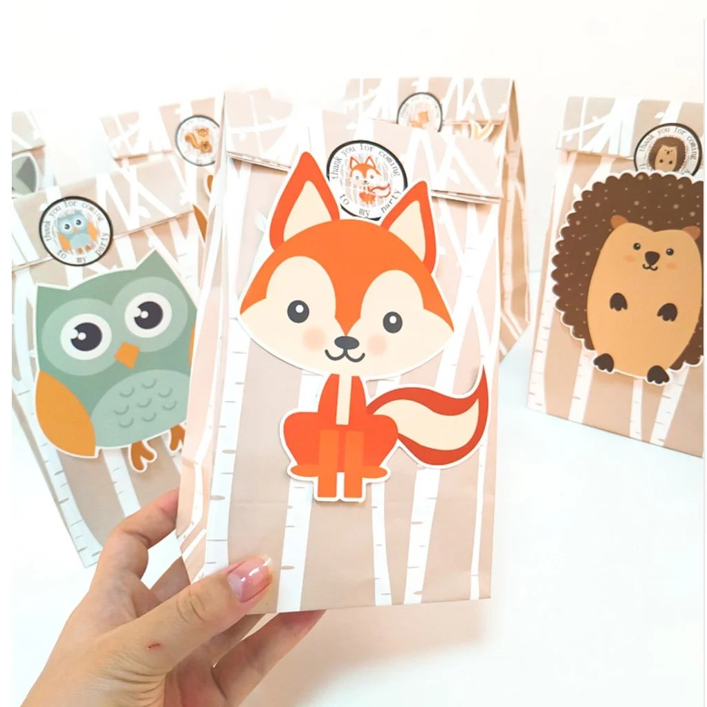 12PCS Jungle Theme Party Birthday Party Decorations Kids Safari Paper Gift Bags Candy Bags Box Baby Shower Packing Bag