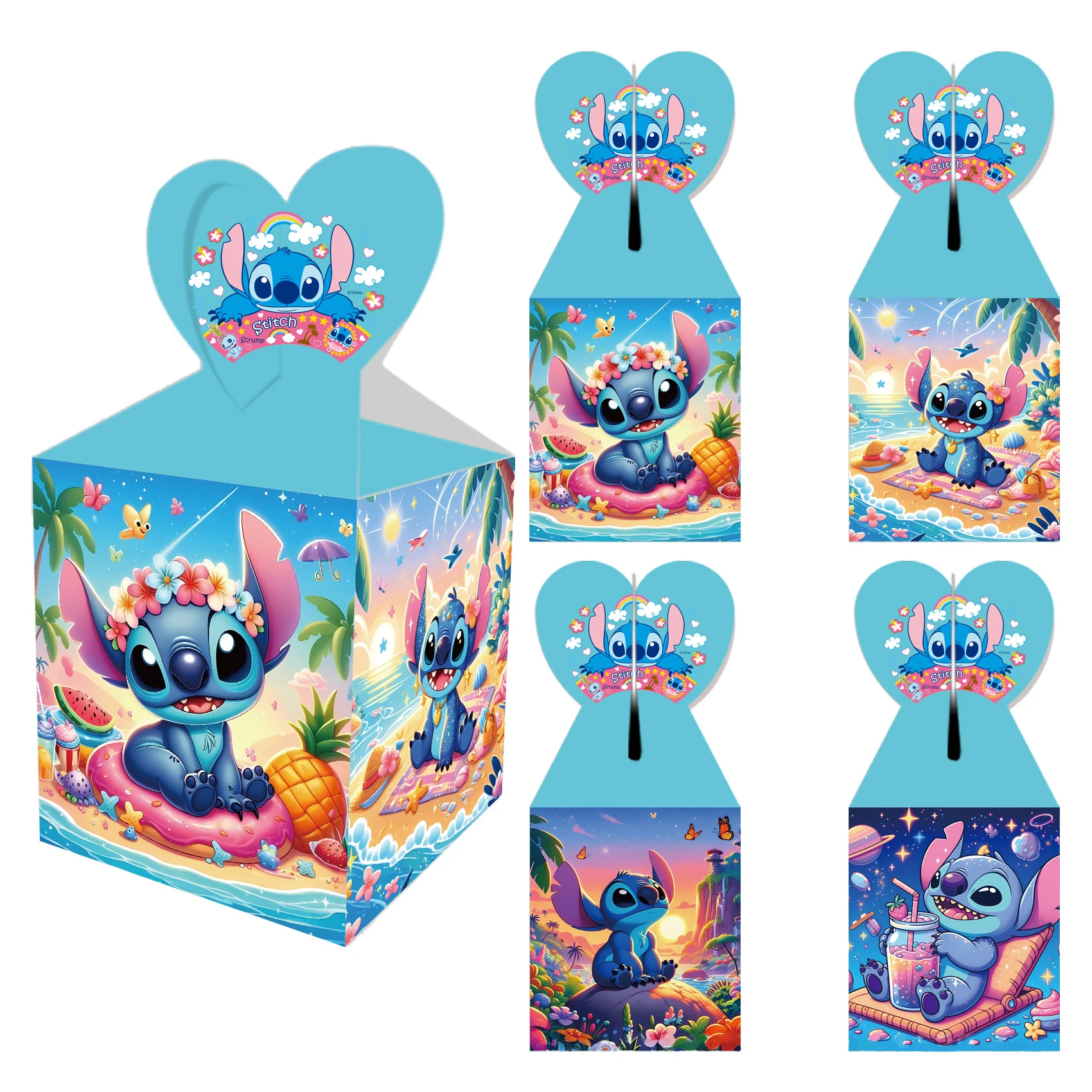 12Pcs Lilo&Stitch Candy Boxes Pink Angel Popcorn Box Cookies Chocolate Snacks Boxes for Baptism Gift Bags Supplies