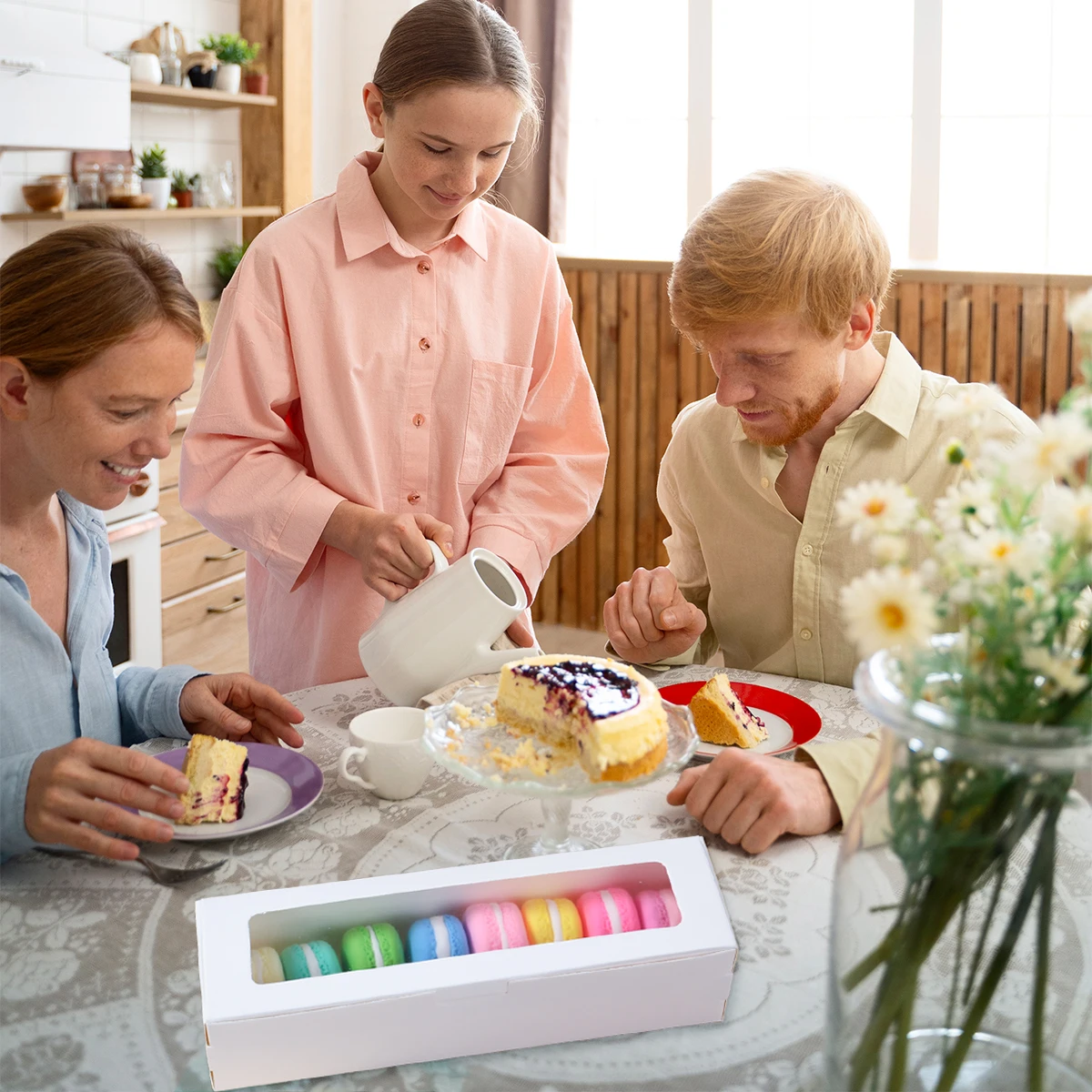 CLEAR DISPLAY WINDOW – Transparent window highlights your macarons and baked goods without exposing them to air, offering an elegant presentation for parties, weddings, or bakery sales.
