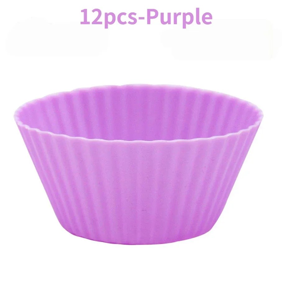 12pcs/Set Silicone Cake Mold Round Shaped Muffin Cupcake Baking Molds Kitchen Cooking Bakeware Maker DIY Cake Decorating Tools