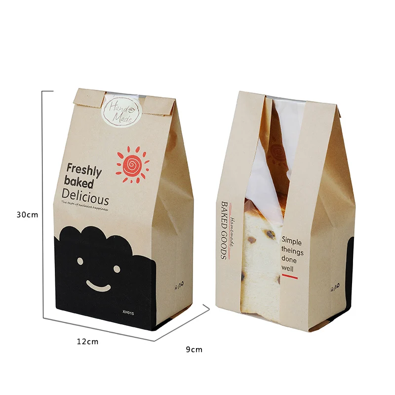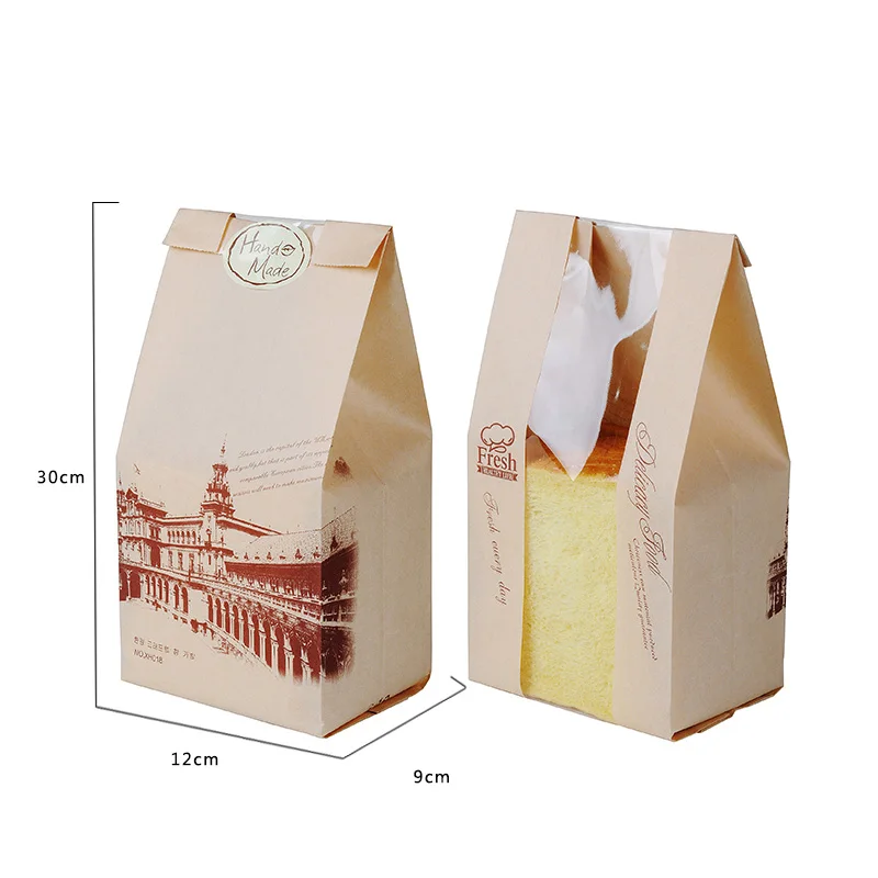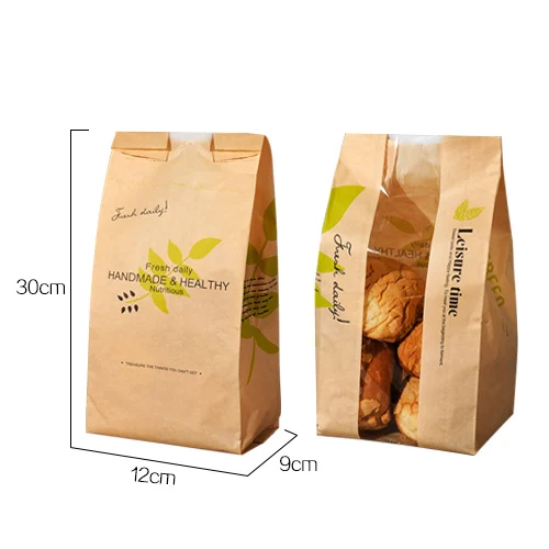 kraft bakery bag with window, food grade bread packaging, donut bag, toast paper bag, cake packaging bag, snack paper bag, brown kraft food bag, DIY baking bag, pastry wrapping bag, eco friendly bakery packaging