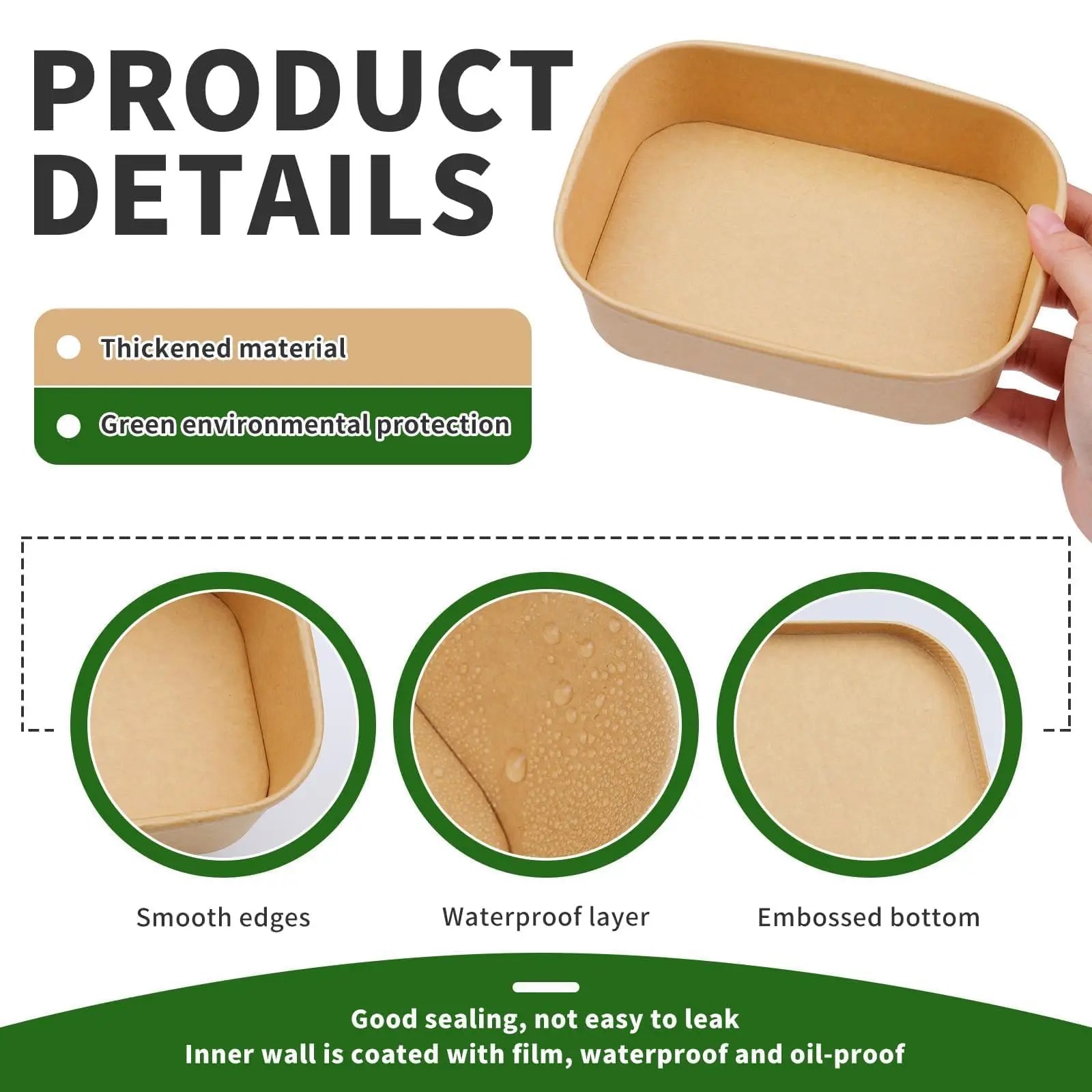 kraft paper lunch box bowls, disposable food containers with lids, bento boxes for takeout, microwave-safe salad bowl, fast food containers, 500ml 650ml 750ml 1000ml, eco-friendly meal prep containers