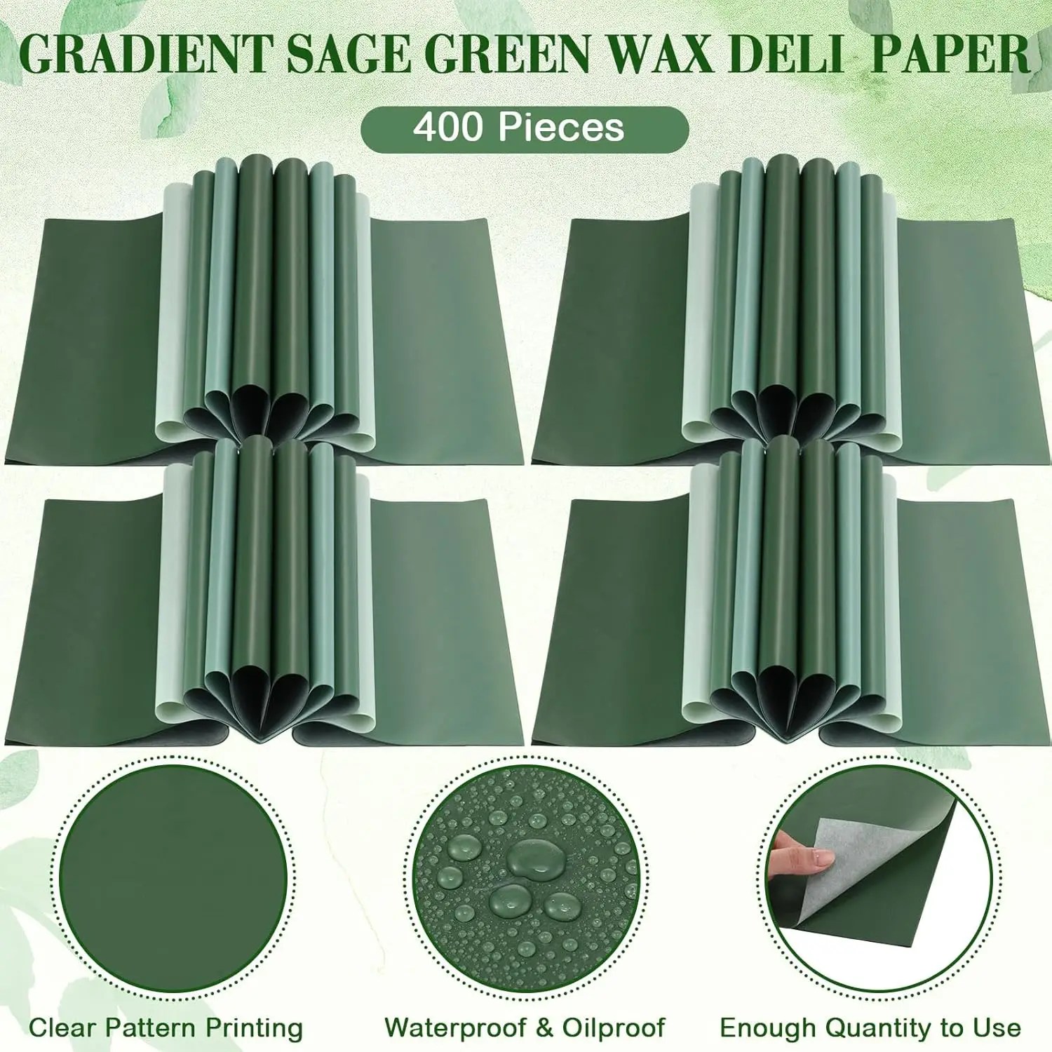400 Sheets Sage Green Wax Paper for Food Gradient Green Deli Paper 4 Colors Greaseproof Sandwich Wrapping Sheets 11.8×11.8 inch