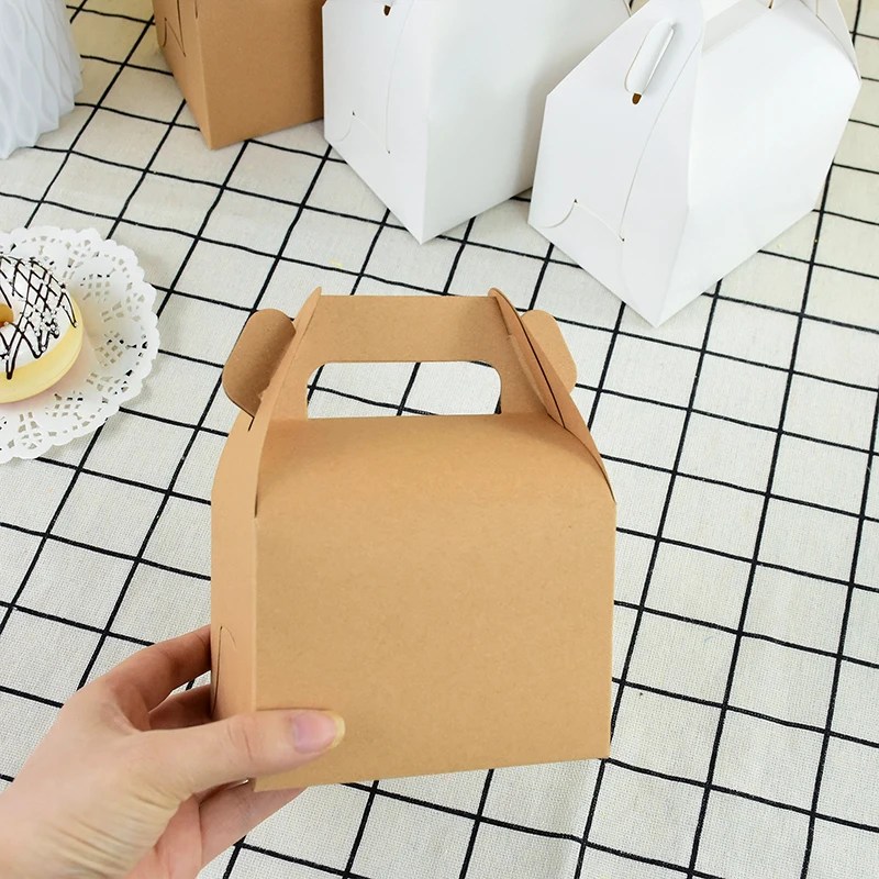 5/10pcs Brown White Kraft Paper Cake Boxes with Handle Cake Gift Box Birthday Wedding Party Dessert Mousse Baking Packaging Box
