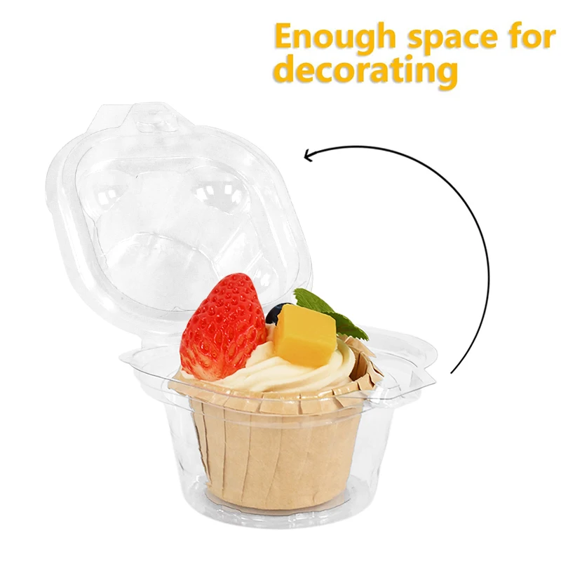 Made from durable, food-safe plastic, each box is lightweight yet sturdy, maintaining the shape of delicate desserts while providing a clear view of decorations, frosting, or intricate details. The transparent design ensures that the visual appeal of each cupcake or muffin is fully visible, making them perfect for gifting, party favors, or bakery displays. These boxes are also suitable for small cakes, pastries, chocolates, or other individual desserts.