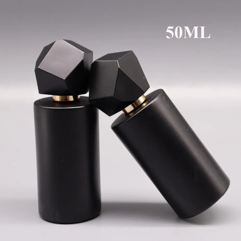 50ml Black Gold Polyhedral Cover Refillable Thick Glass Spray Perfume Bottle Empty Atomizer Bottle Makeup Cosmetic Container