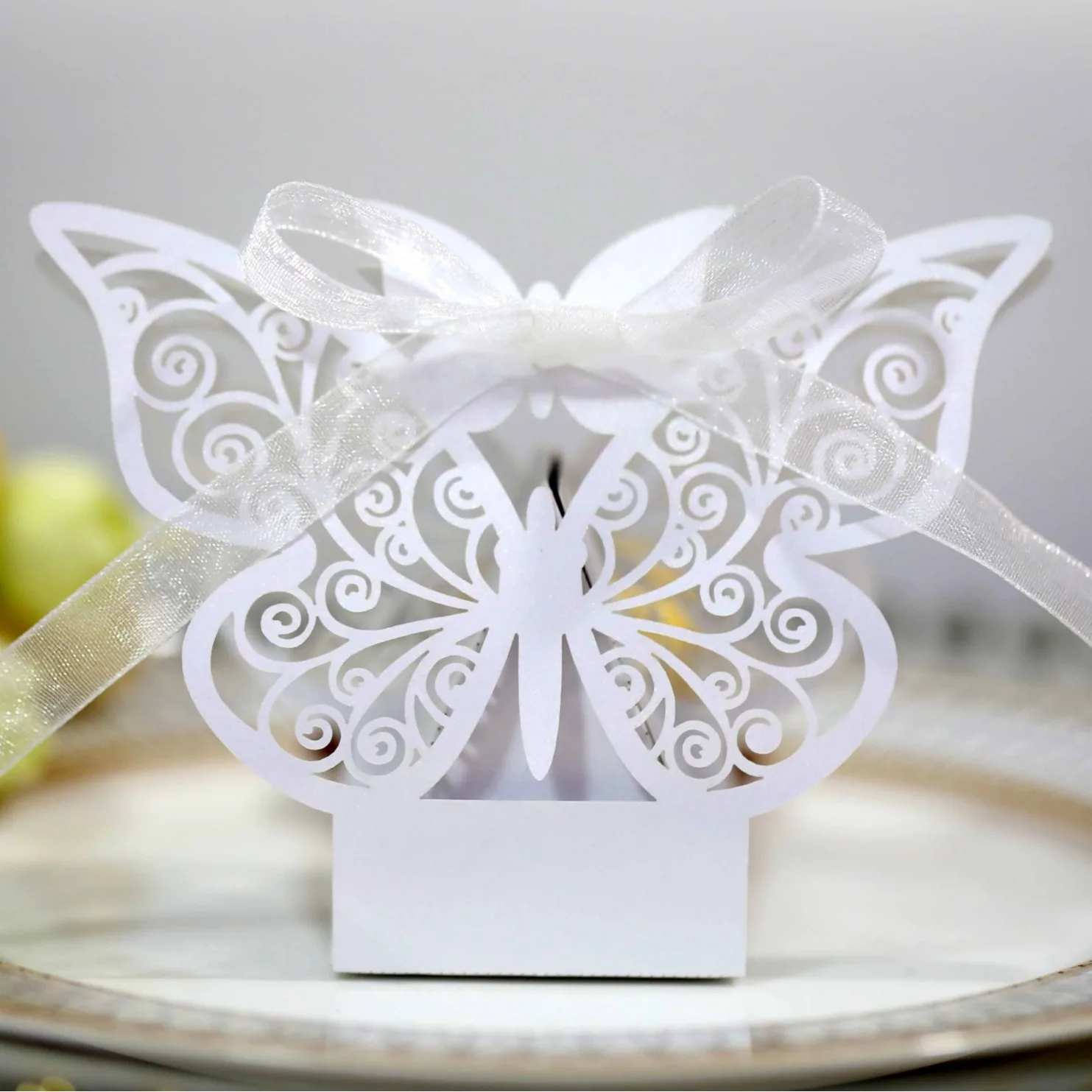 50pcs Laser Cut Candy Favor Boxes with Ribbons, Wedding Gift Cartons for Chocolate Cook... - SKU LCLB0908 - UGI Packaging