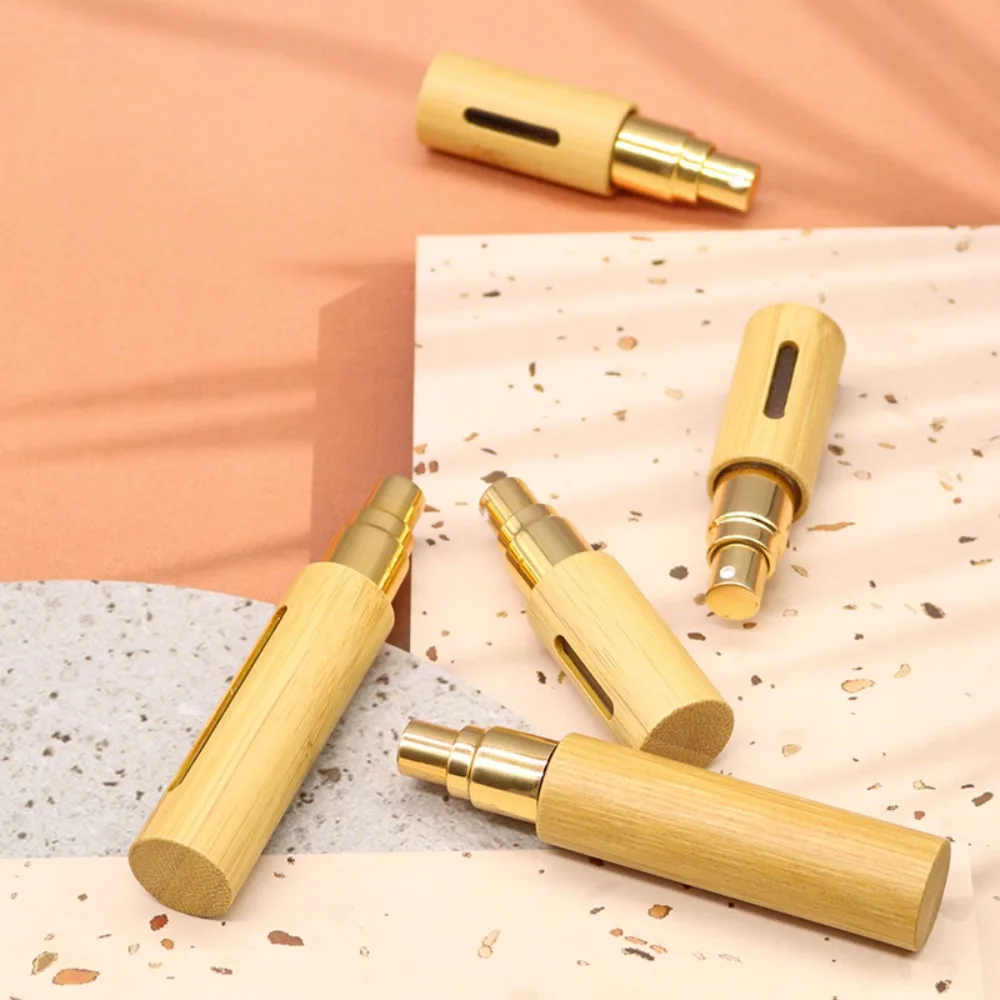 5ml 10ml Bamboo Spray Bottle for Travel, Portable Refillable Mini Cosmetic Container, Eco-Friendly Liquid Atomizer, Cylindrical Design for Perfume, Essential Oils, Face & Body Care, Gift-Ready