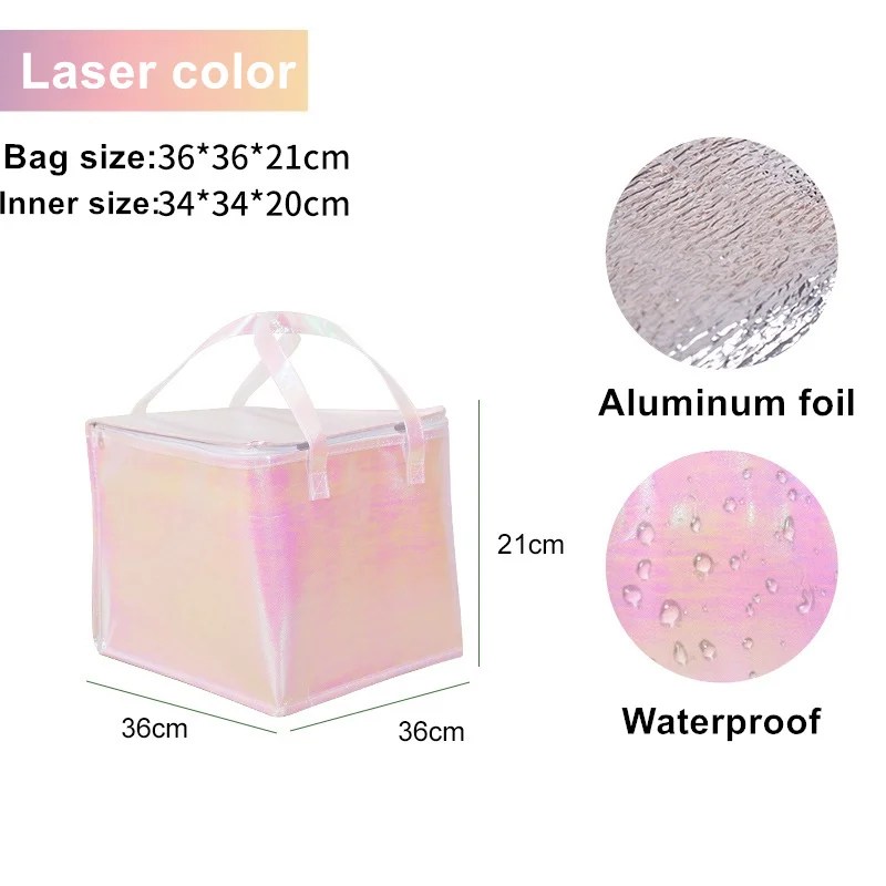 5pcs Laser Color Non-woven Insulation Tote Bag Fabric for Cake Food Drinks Package Keep Warm Cold Delivery Portable Pouch