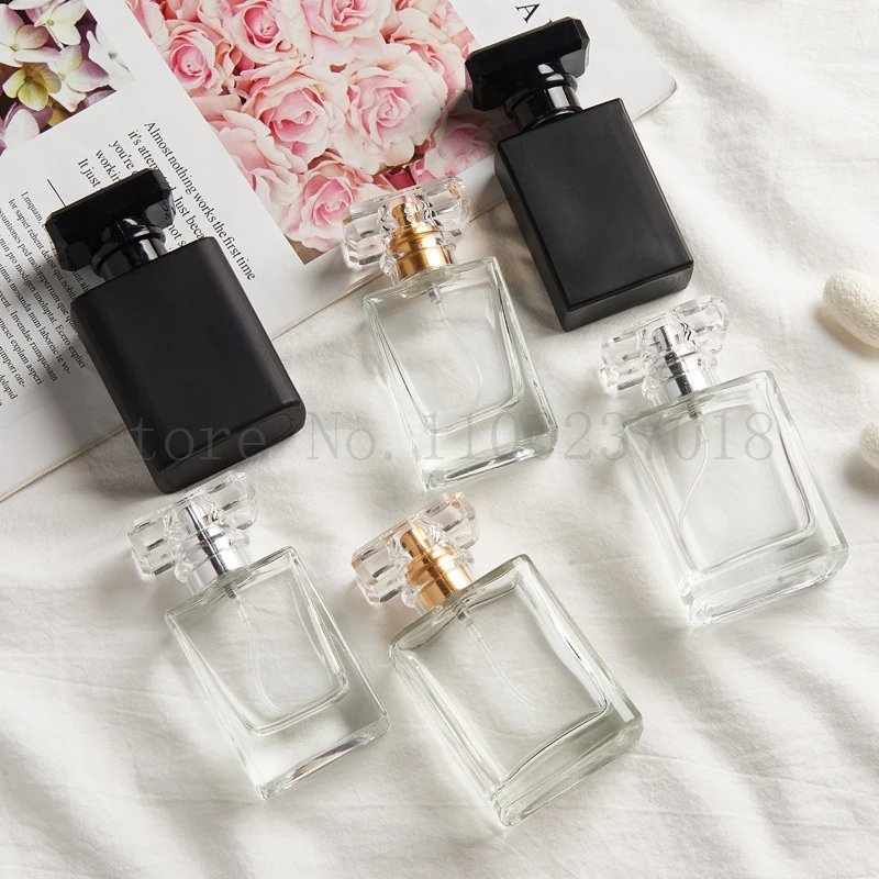 6 PCS/LOT 30ml 50ml Square Black/White/Clear Glass Perfume Bottle with Fine Mist Liquid Spray Travel Vacuum Separate Bottling (复制)