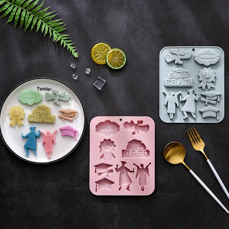 8-hole Graduation Season Theme Modeling Silicone Mold Fondant Cake Chocolate Mold Ice Cube Cake Mould Baking Accessories