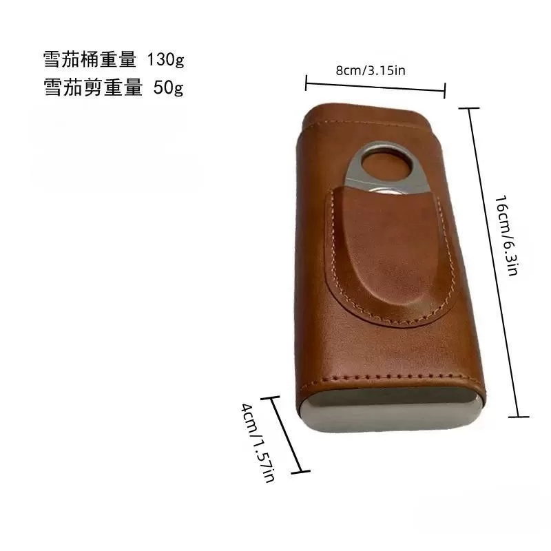 3-Piece Brown Leather Cigar Case + Stainless Steel Cutter |