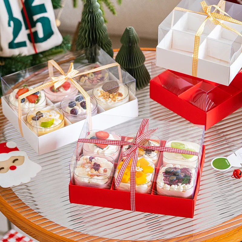 transparent cake gift box, mousse cup packaging, dessert box with handle, bakery packaging box, cupcake holder 4 6 9 grid, party favor cake box, festival gift packaging, New Year pastry container
