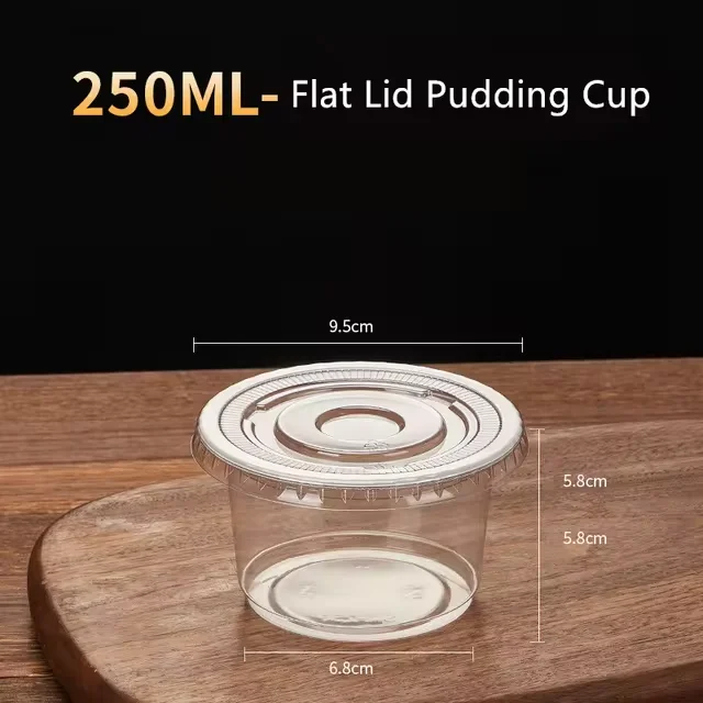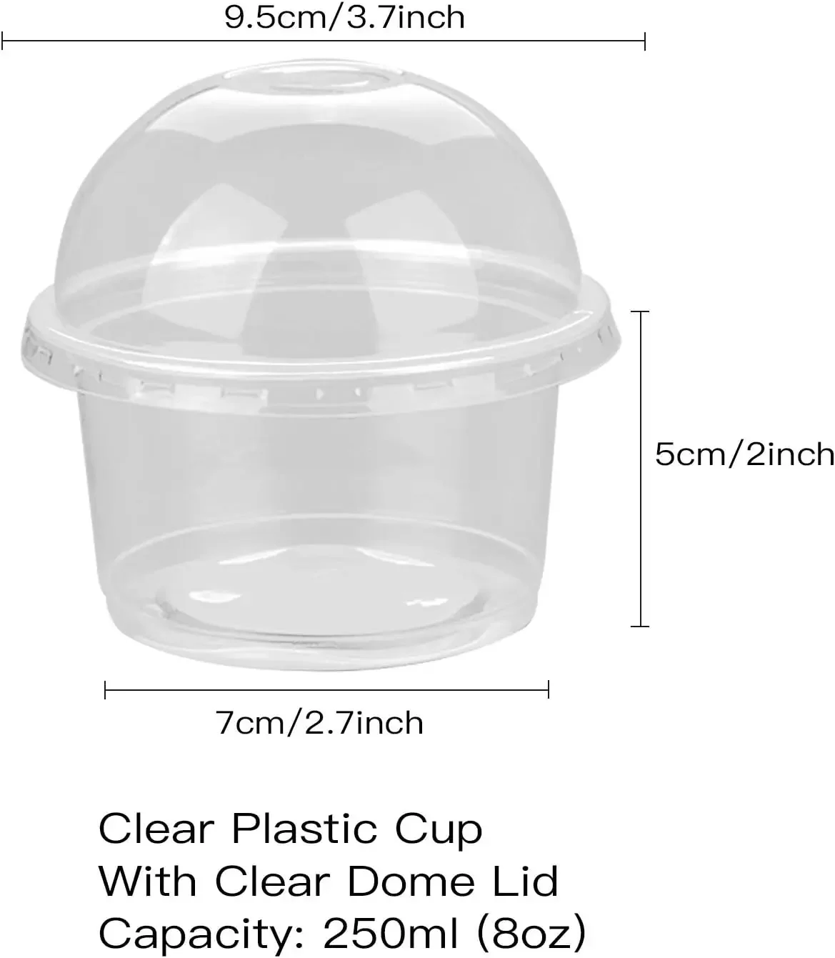 Elevate your dessert presentation with our 250ML clear disposable plastic cups, available in sets of 50 or 100. Crafted from durable, food-grade PET plastic, these cups are both BPA-free and recyclable, making them a safe and eco-friendly choice for serving a variety of cold treats. Each cup comes with a dome or flat lid that seals tightly to prevent leaks and spills, ensuring your desserts remain fresh and intact during transport. The crystal-clear design allows for an elegant display of layered desserts, fruit salads, yogurts, and more, making them perfect for parties, weddings, catering events, or everyday use. Stackable and lightweight, these cups offer convenience without compromising on quality or style.