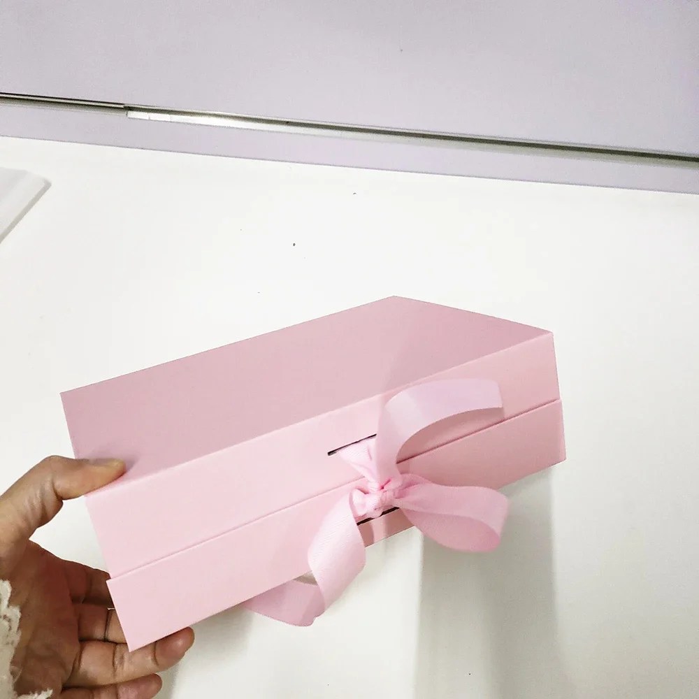 Elevate your brand packaging with this set of 100 luxury foldable magnetic gift boxes, featuring a clean, book-style design and satin ribbon closure. These elegant boxes arrive flat for convenient storage and are easy to assemble when needed. Ideal for small businesses, retail stores, or event gifting, each box is made with quality materials that balance durability with sophistication.