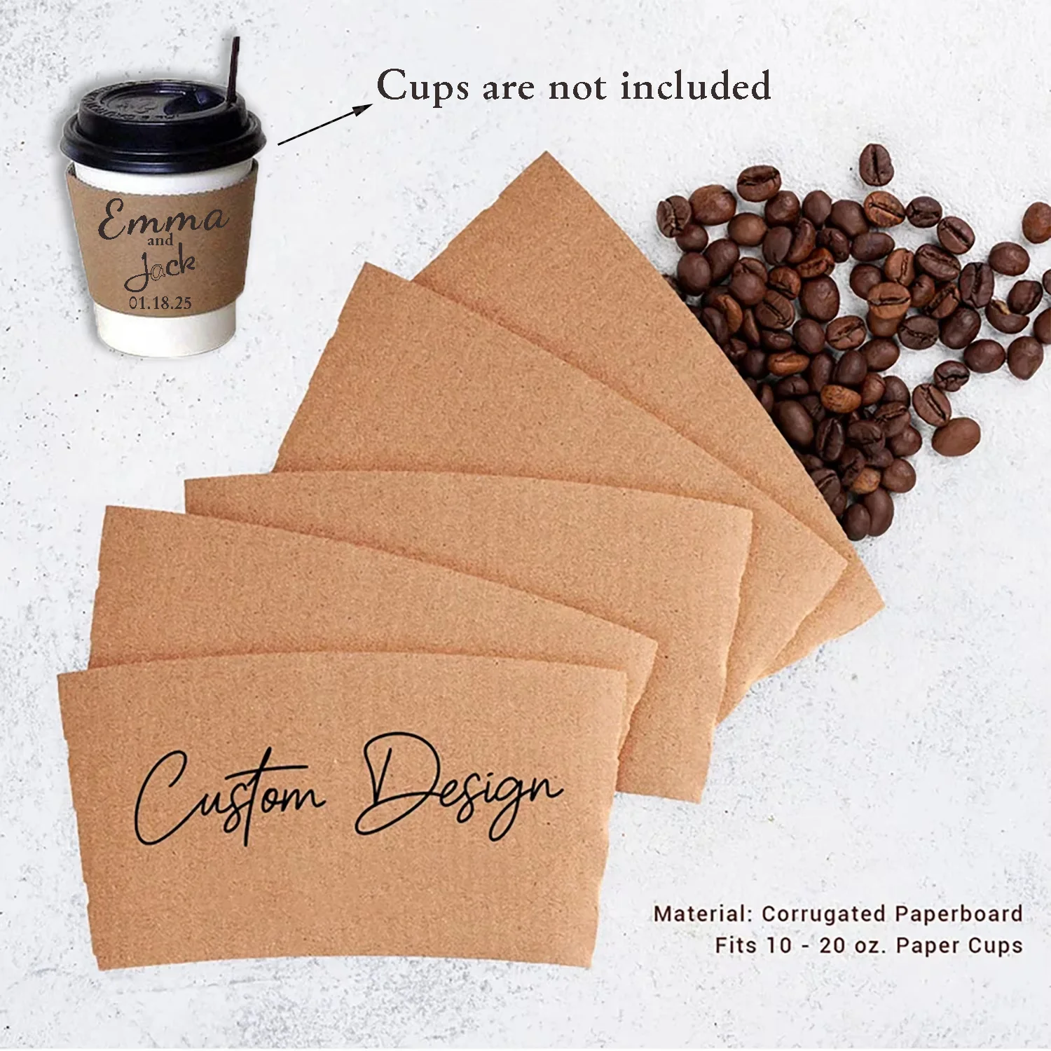Custom printed coffee cup sleeves 10-20oz, Kraft disposable cup holders, heat-insulated drink sleeves, wedding party café takeaway accessories, hot beverage cup covers, eco-friendly disposable coffee sleeves, personalized cup holders, event drink accessories