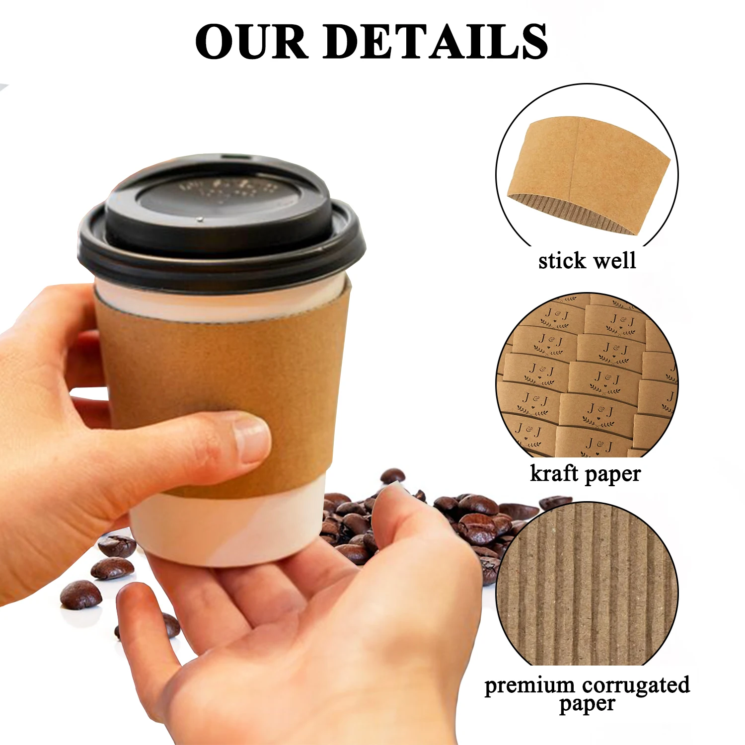 Custom Printed 20PCS 10-20oz Coffee Cup Sleeves, Kraft Disposable, Heat Insulation Drinks Cup Sleeve for Hot Beverages