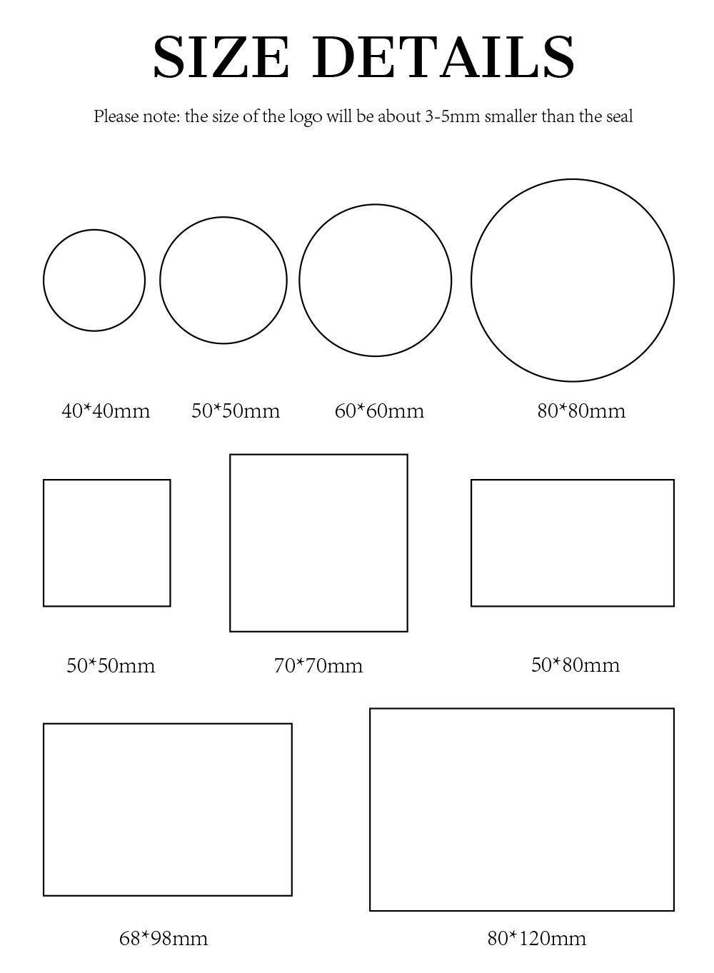 | Note | Size tolerance ±3–5mm; one size per custom stamp |
