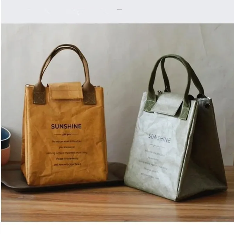 Foldable Reusable Leakproof Food Container Large Capacity Lunch Bag Waterproof Thermal Insulation Paper Bags Worker Student