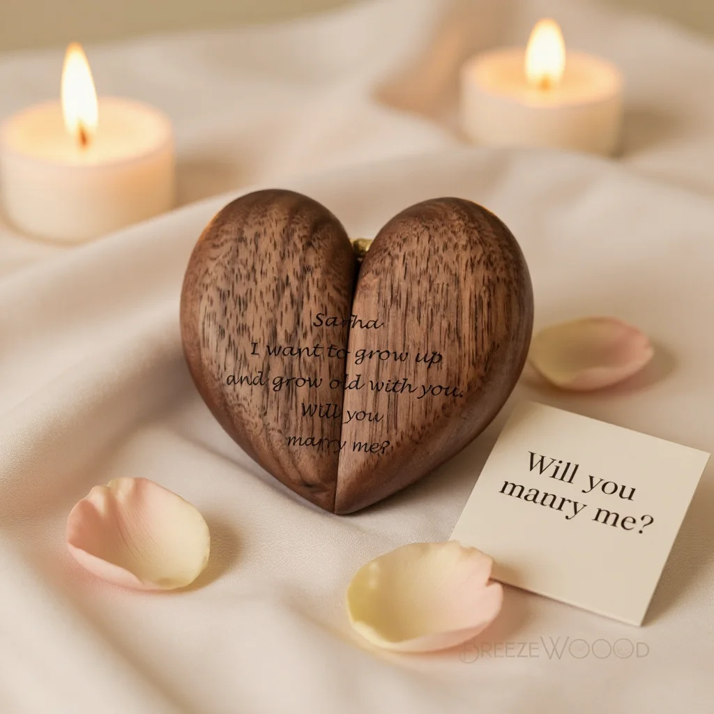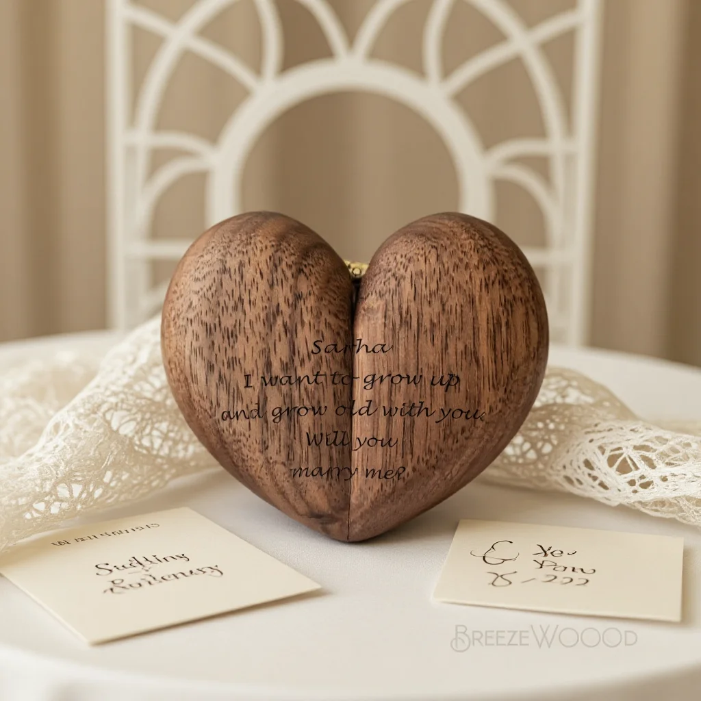Handmade Heart – Shaped Wooden Ring Box, Personalized Engraving for Proposals Ideal Wedding Jewelry Case Unique Gift for Fiancée