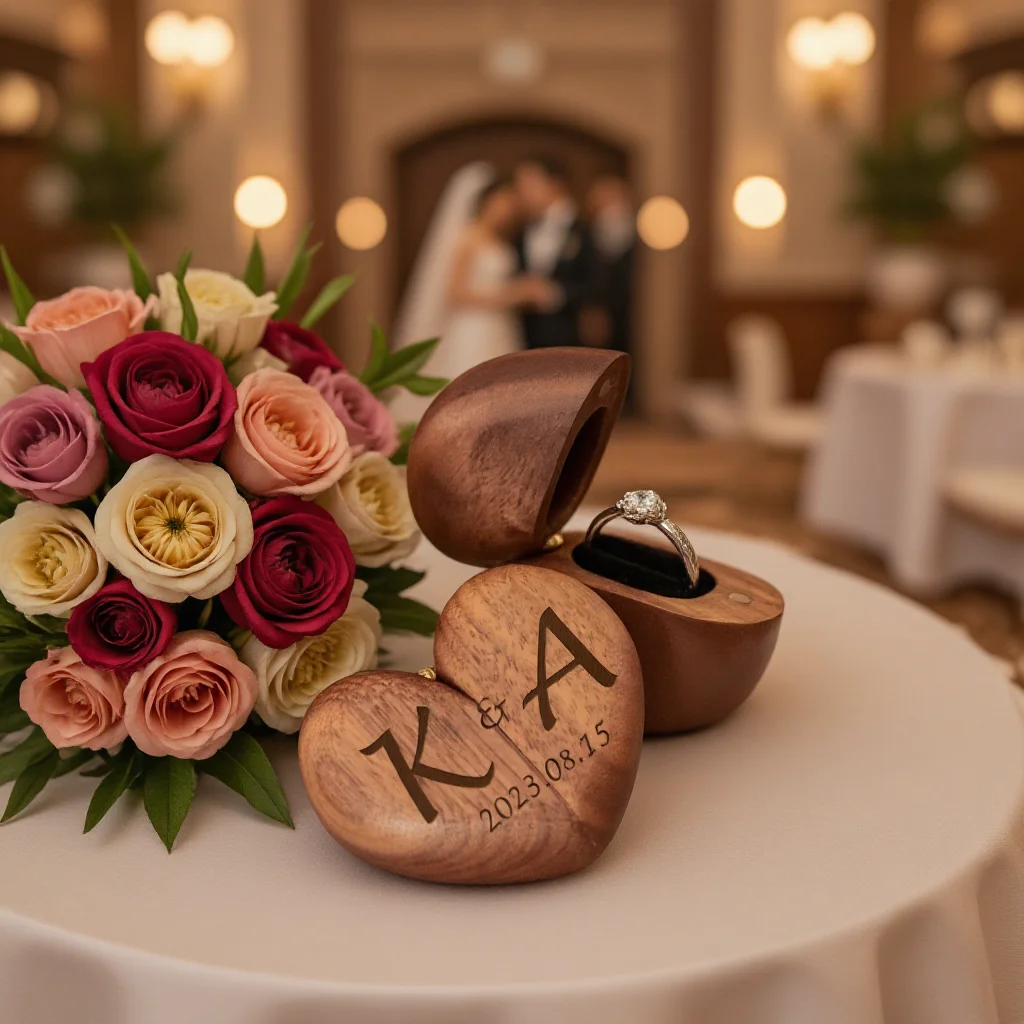 This heart jewelry case is more than packaging — it’s a memory box that captures “Will you marry me?” in style. Across cultures, it’s known as boîte à bague cœur en bois, caja de anillo corazón de madera, scatola portafedi a cuore, Holzringbox Herzform, علبة خاتم خشبية على شكل قلب, 하트형 나무 반지 상자, representing romantic elegance and artisanal quality.