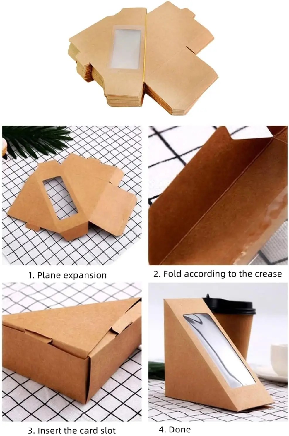 Looking for an eco-friendly and professional way to package sandwiches, desserts, or sushi? These wedge-shaped kraft paper food boxes feature a clear display window, letting your delicious creations shine while maintaining freshness and hygiene. Their sturdy design makes them an excellent choice for bakery counters, catering businesses, and food delivery services.