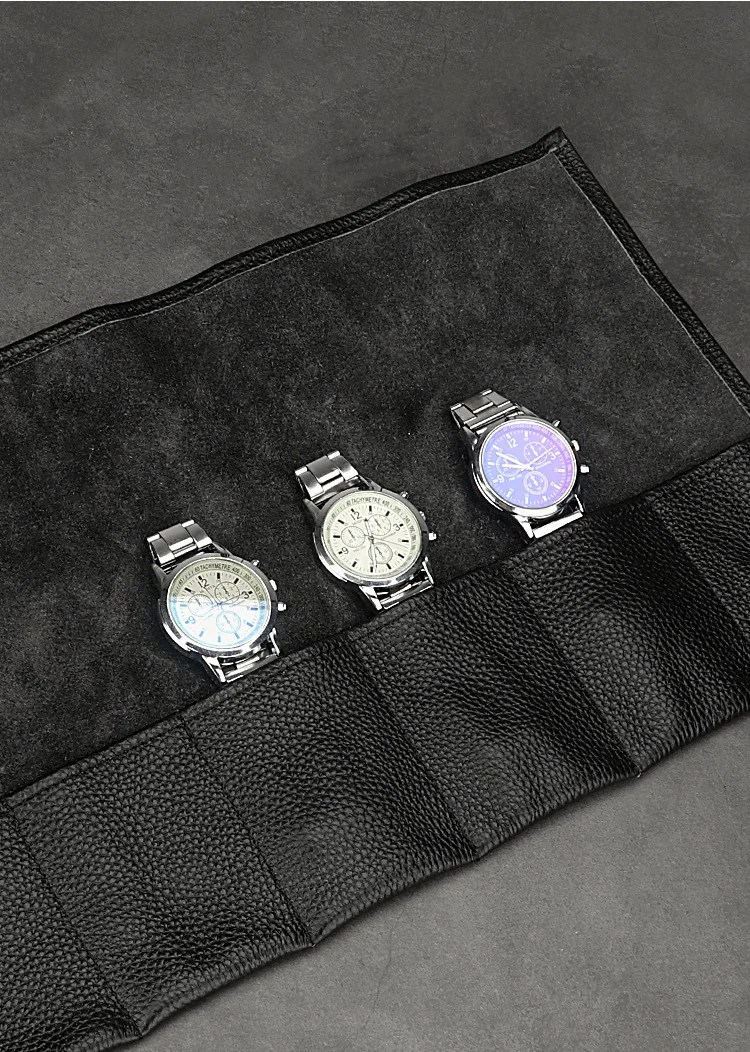 Whether for business trips or home organization, this compact watch roll secures your watches in individual compartments with adjustable holders that fit various band lengths and case diameters. It’s compatible with smartwatches, analog wristwatches, and automatic timepieces — making it a versatile solution for both men’s and women’s collections. Lightweight yet sturdy, it’s also perfect for use as a display organizer or travel bag.