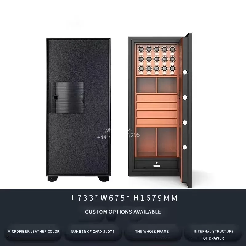Equipped with smart alarm functions, the cabinet emits a 120 dB siren when tampered, moved, or left open beyond a set time. Optional fingerprint access offers an additional layer of convenience and security. This model can be tailored to your specific requirements, with a production cycle of 30–40 days for custom interiors. To explore full customization options or wholesale pricing, contact us directly through WhatsApp +44 7783 771295 to receive a comprehensive catalog and quotation. Our team is committed to delivering world-class safe boxes at direct factory value.