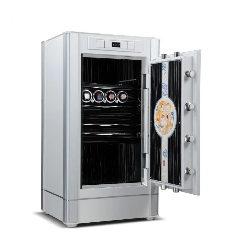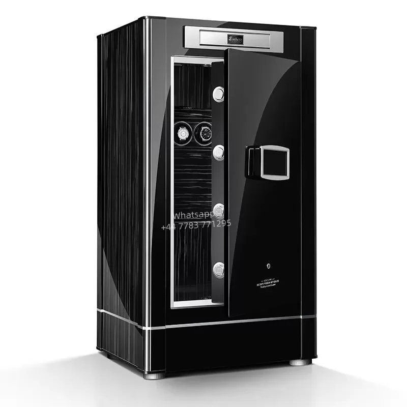 This advanced leather-covered watch safe combines the elegance of a high-end automatic watch winder with the protective features of a fireproof and anti-theft security box. Designed to safeguard timepieces, fine jewelry, cash, or even firearms, it offers fingerprint unlocking for fast access. The interior is carefully crafted with soft superfiber chamois and can be personalized with custom layouts and colors to suit luxury display and secure storage needs.