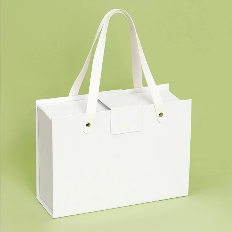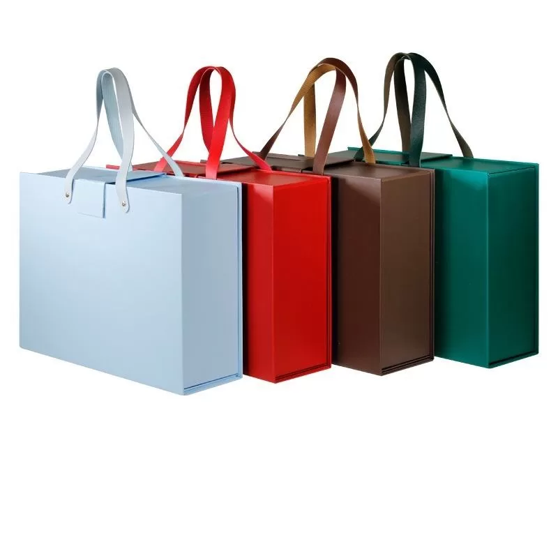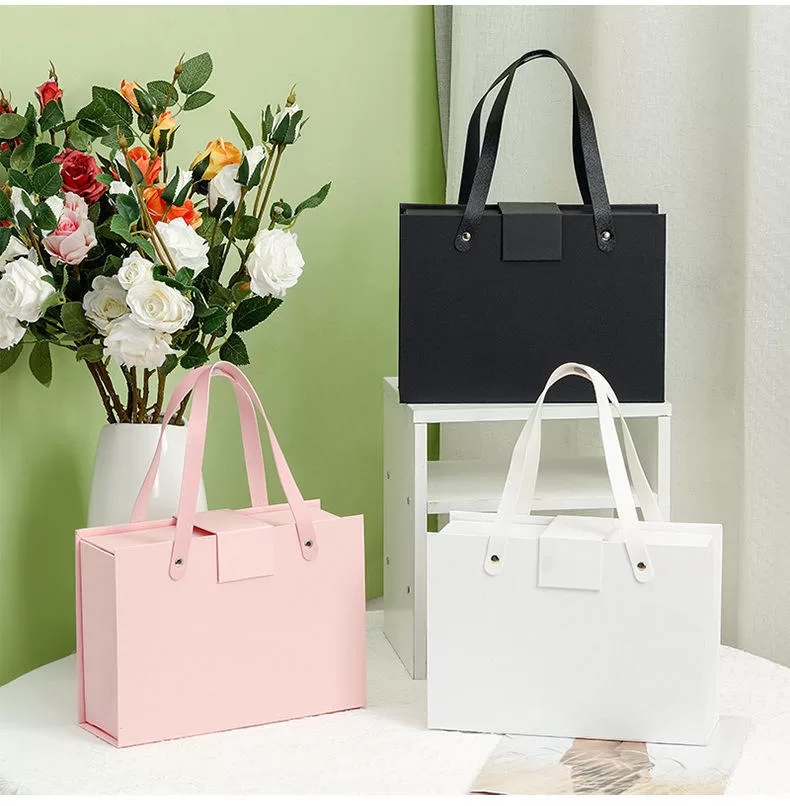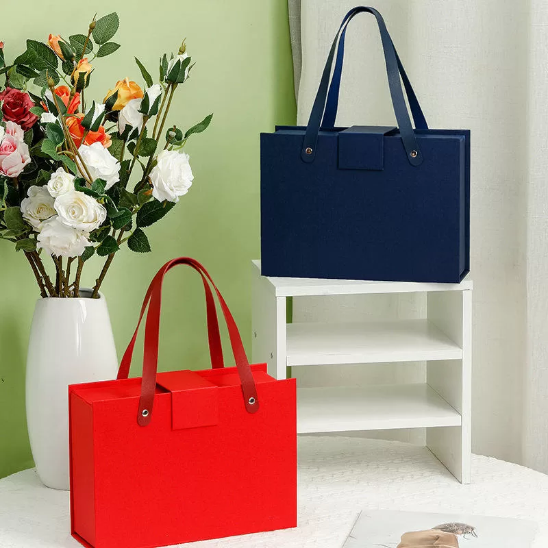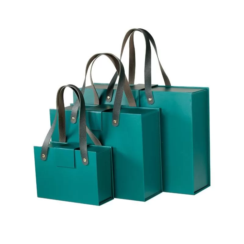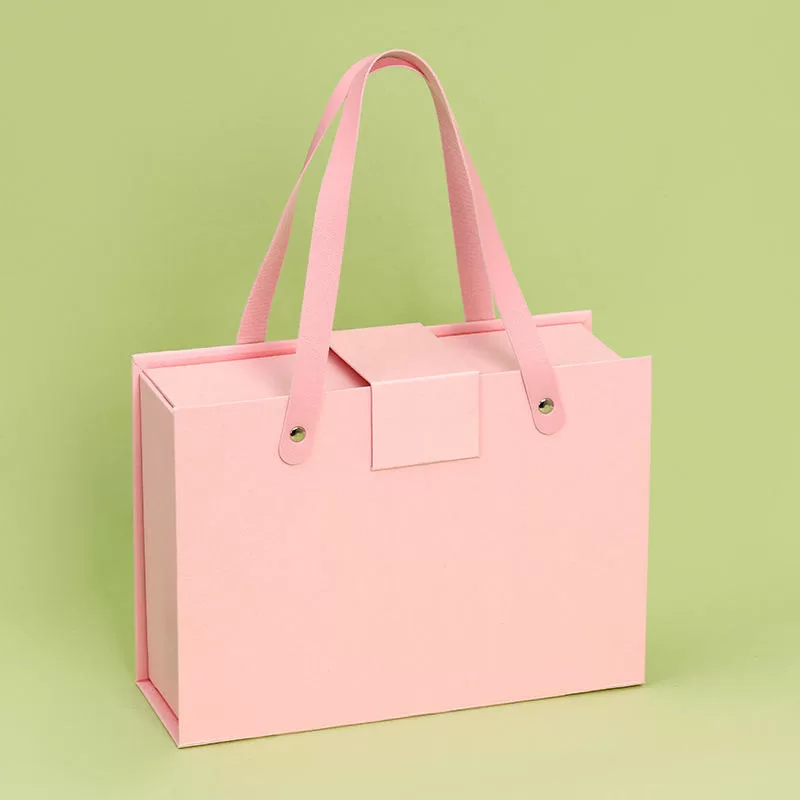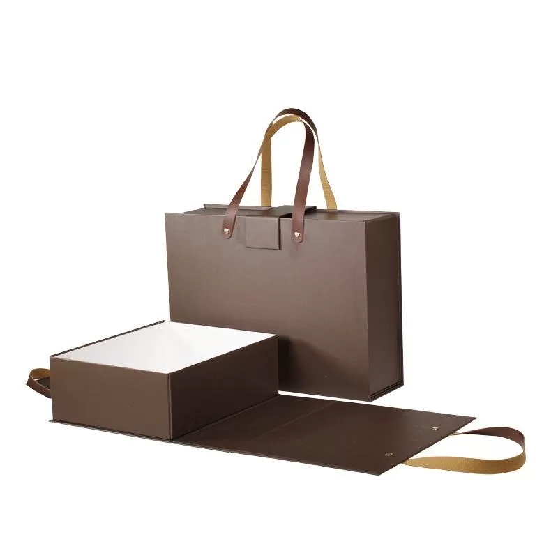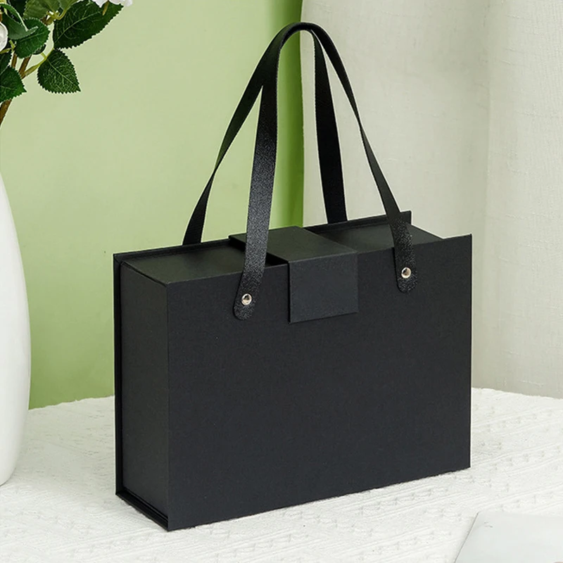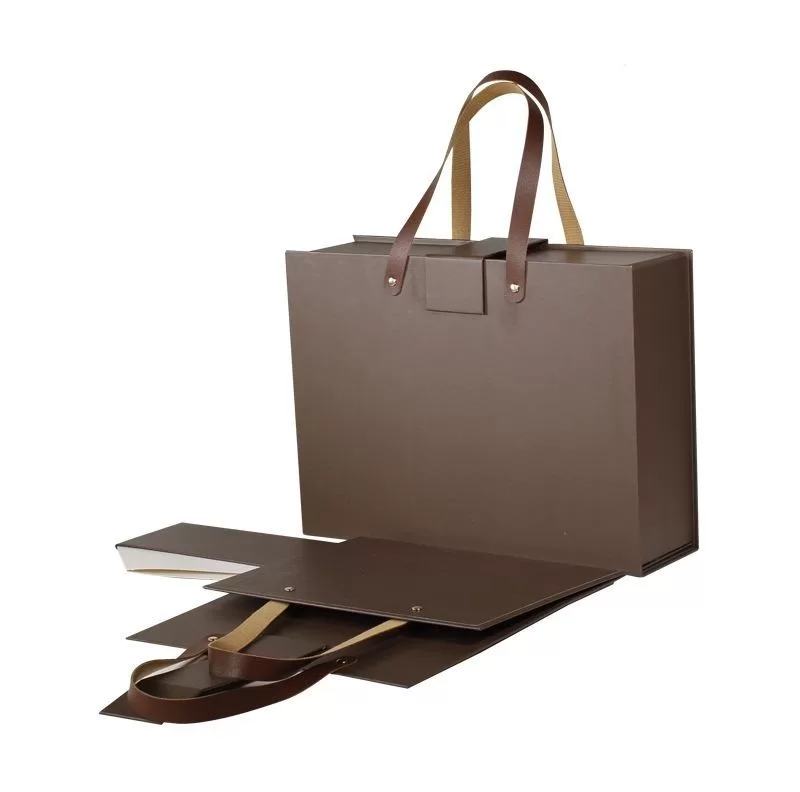 Elevate your gift presentation with our Luxury Magnetic Gift Box with Handle, designed to combine elegance, durability, and practicality. Crafted from high-quality coated cardboard, this foldable packaging solution features a magnetic flap closure that provides both security and style. The sleek design is complemented by a strong ribbon or leather handle, making it easy to carry and perfect for retail displays, personal gifts, or promotional events.