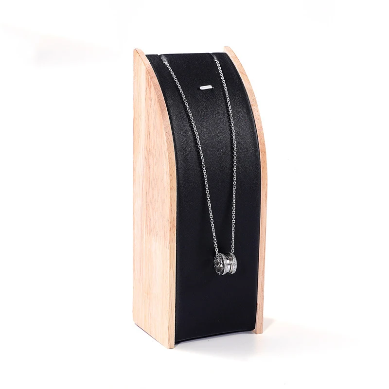 Showcase your favorite necklaces, pendants, and bracelets in refined style with this wooden curved jewelry display stand. Designed for retail counters, craft fairs, or boutique use, it highlights each jewelry piece with a sleek modern curve that mimics natural drape. The stand is ideal for showcasing long chains or layered designs, enhancing visual appeal for both sales and photography.
