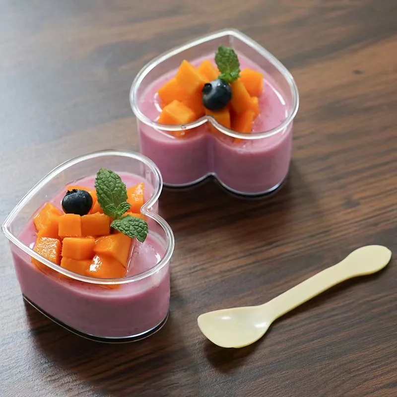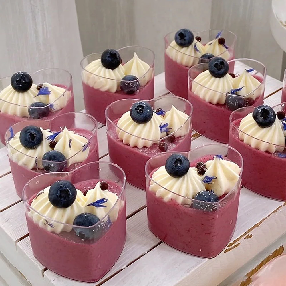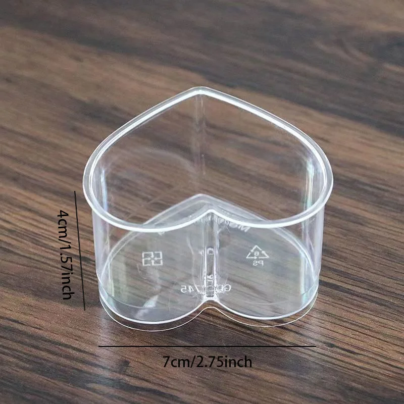 Add a touch of elegance and romance to your dessert table with our 10pcs Mini Heart-Shaped Clear Plastic Dessert Cups. Designed to showcase your culinary creations, these 2oz cups are perfect for serving a variety of treats such as ice cream, pudding, mousse, jelly, and more. The heart-shaped design not only adds a charming aesthetic but also makes them ideal for special occasions like weddings, anniversaries, Valentine’s Day, and other celebrations.