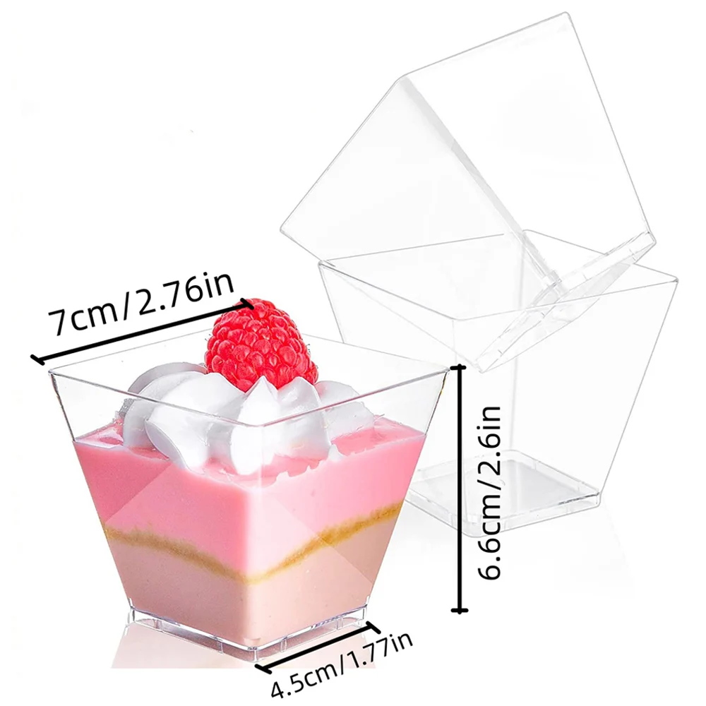 Made from high-quality plastic, these cups are both durable and lightweight, ensuring they can be reused multiple times or disposed of after a single use for convenience. Their crystal-clear appearance allows guests to admire the vibrant colors and intricate layers of your desserts, enhancing the overall dining experience. Whether you’re a professional caterer or hosting a personal event, these versatile cups are a delightful addition to any occasion.