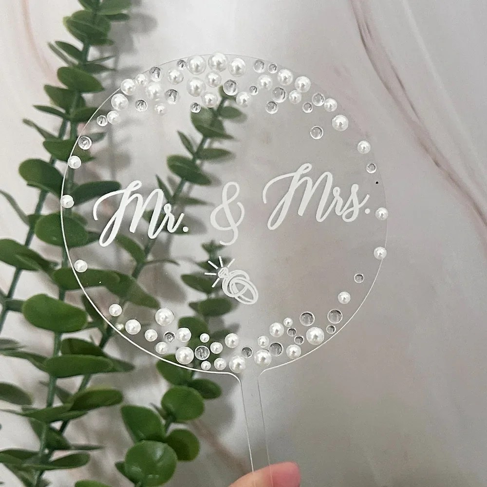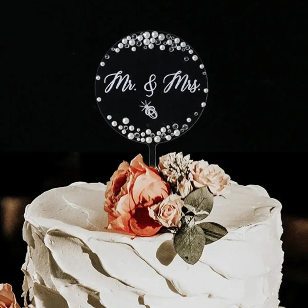 mr and mrs cake topper, acrylic wedding cake topper, engagement party cake decoration, bride groom cake sign, anniversary cake topper, pearl diamond cake topper