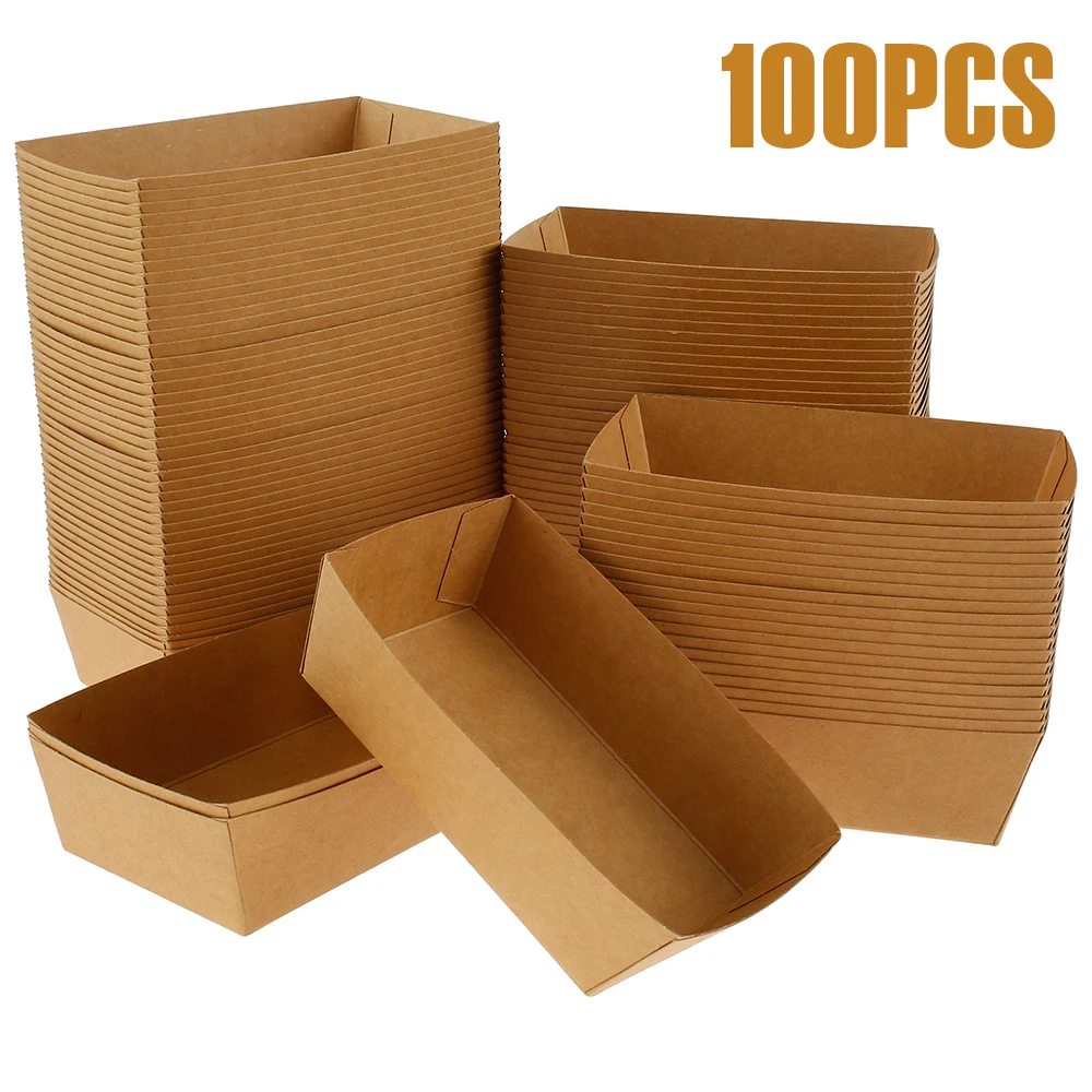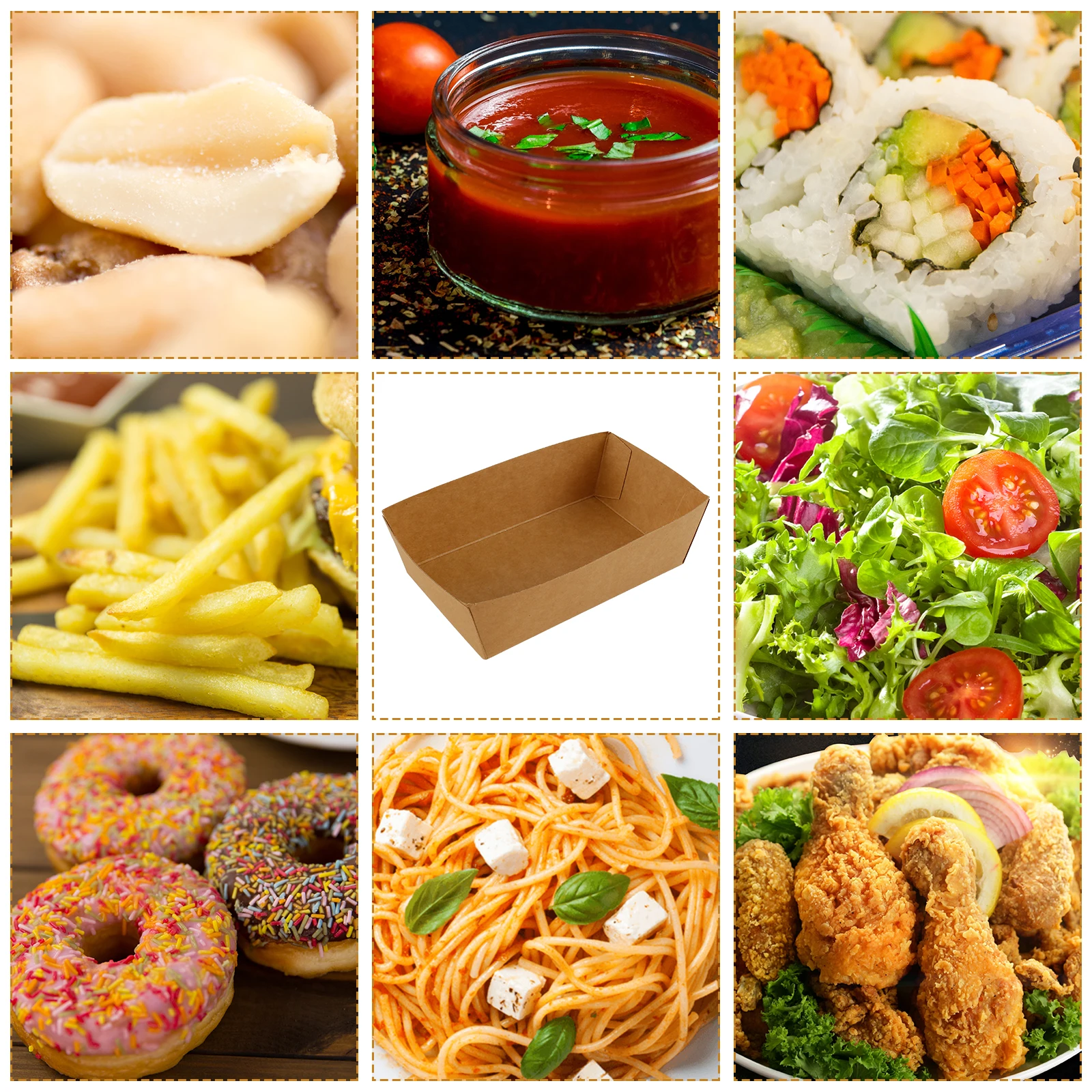 Paper Food Boxes Oil Proof Take Out Food Tray Recyclable Paper Food Tray Sturdy and Durable for Chip Burger Party Picnic Camping