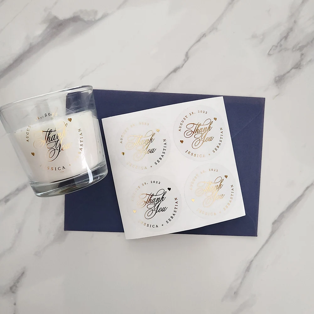 Elevate your packaging and branding with our custom clear stickers featuring premium gold or silver foil accents. Perfect for businesses, weddings, and special events, these stickers combine transparency and shine to deliver a modern, high-end look that enhances your brand’s image.