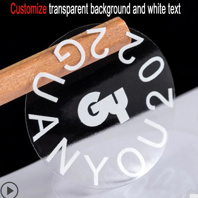 transparent gift stickers, white text labels, personalized wedding stickers, custom company logo decals, gift box labels, DIY packaging stickers, event favor stickers, corporate branding labels, elegant adhesive labels