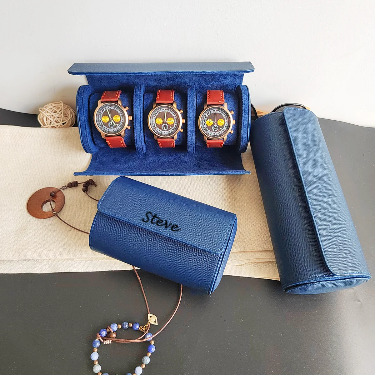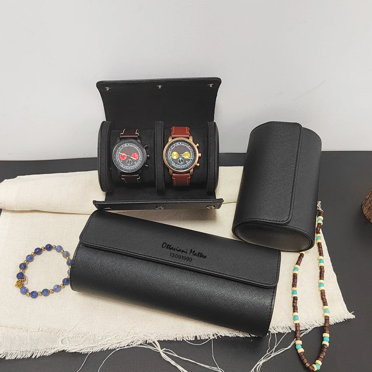 custom leather watch roll, 1/2/3-slot watch case, personalized engraved watch box, travel watch organizer, men’s gift watch case, caja reloj cuero, étui montre cuir, Uhrenbox Leder, custodia orologio, caixa relógio couro, 時計収納ケース, 시계 보관함, صندوق ساعة جلدية