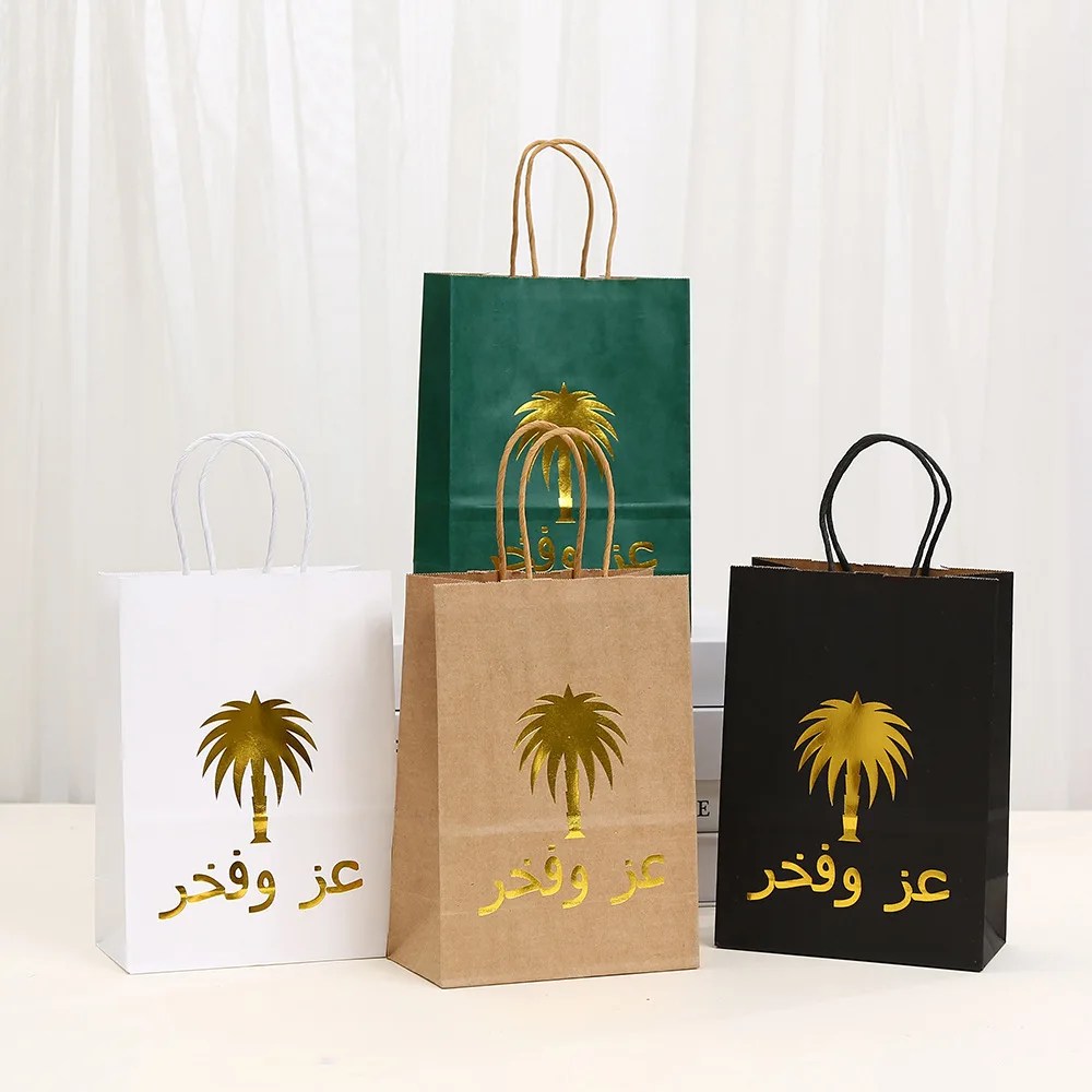 ramadan eid arabic kraft paper gift wrapping bags for sweets palm gold foil design paper handle bag candy treat