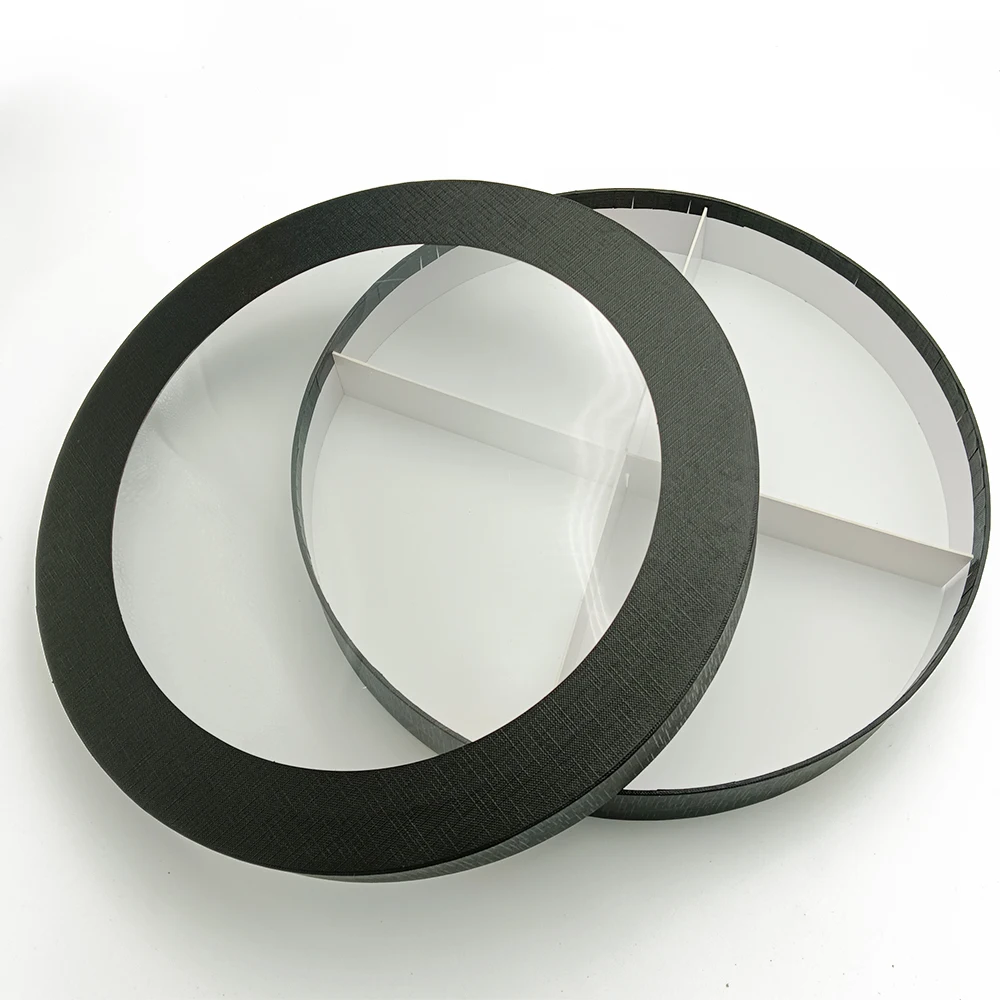 Present your handmade desserts and gourmet creations in style with this round sweet gift box. Designed with an internal divider, it keeps charcuterie, strawberries, chocolates, and other delicate treats neatly organized and visually appealing. The clear lid allows the contents to shine while the sturdy structure makes it a practical choice for packaging gifts, desserts, or bakery items.