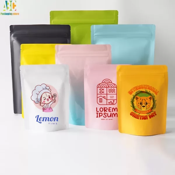 Standing Up Aluminum Foil Zip Lock Bags Matte Customize Print Logo Tea Coffee Food Nut Candy Cookies Packaging Pouch