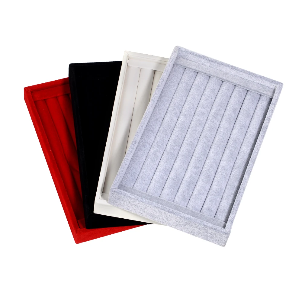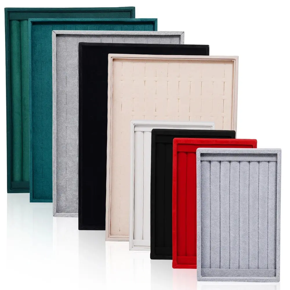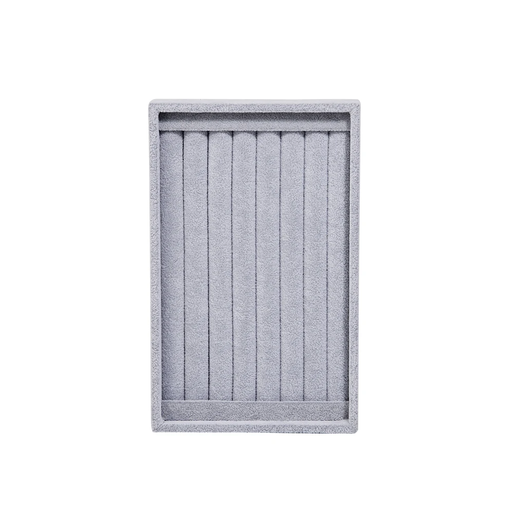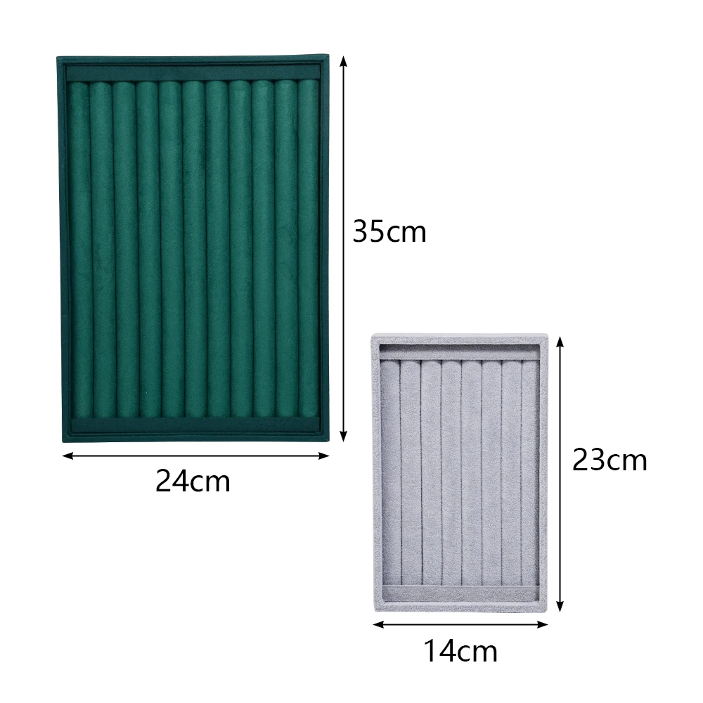 We offer two sizes to fit different retail needs: 24×35×3cm (ideal for countertop displays and larger showcases) and 14×23×3cm (perfect for compact spaces or travel jewelry exhibitions). The larger tray can hold 30-50 pieces depending on jewelry size, while the smaller one accommodates 15-25 pieces. Consider your counter space and inventory volume. Many jewelry retailers order both sizes for flexible merchandising. Check out our complete luxury jewelry gift box collection for complementary packaging solutions.